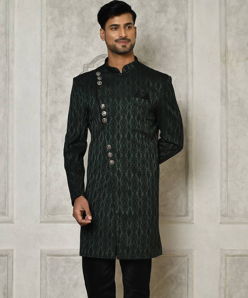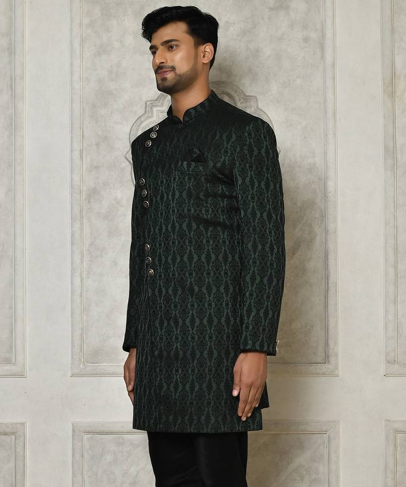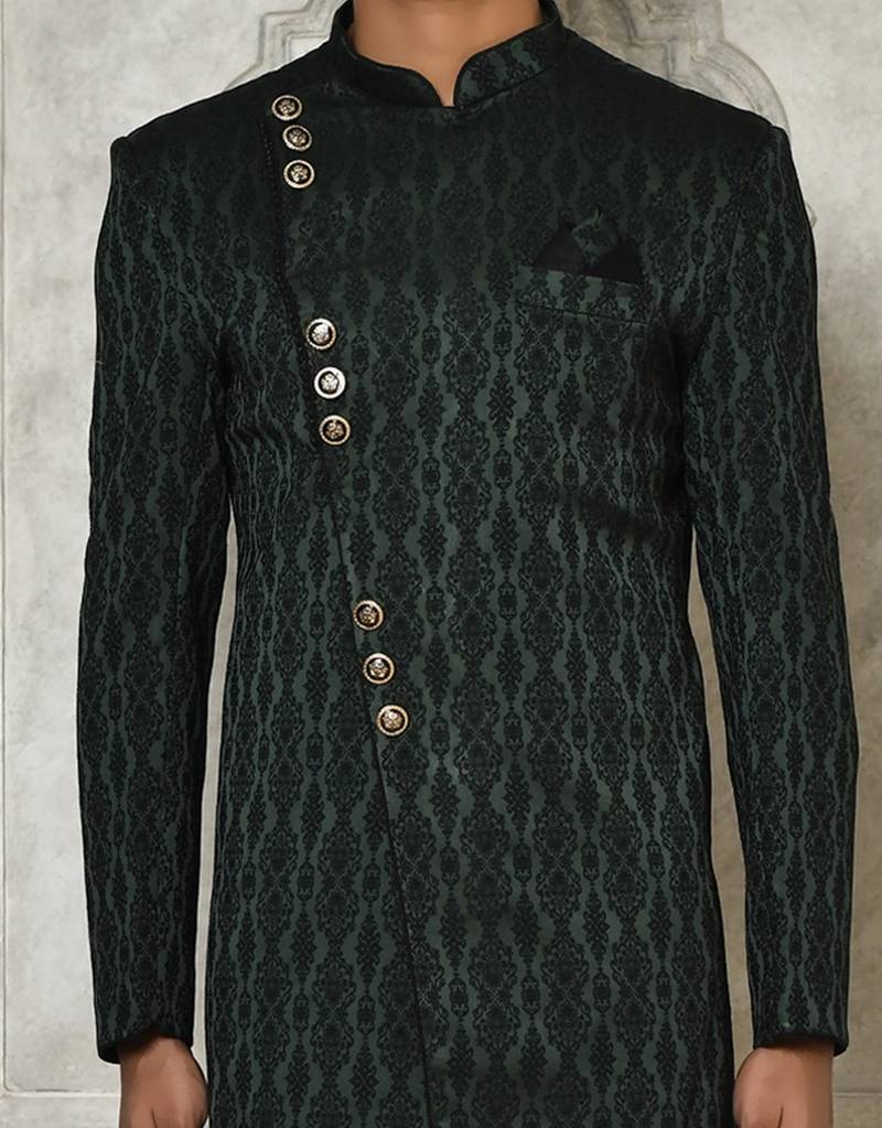 | Product Name | Bottle Green Anghrakha Pattern Work Indo Western | |
