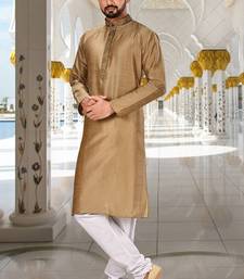 Product Name Bottle Green Dupion Art Silk Kurta With Hand Work On Collar And Front Button Line Churidar