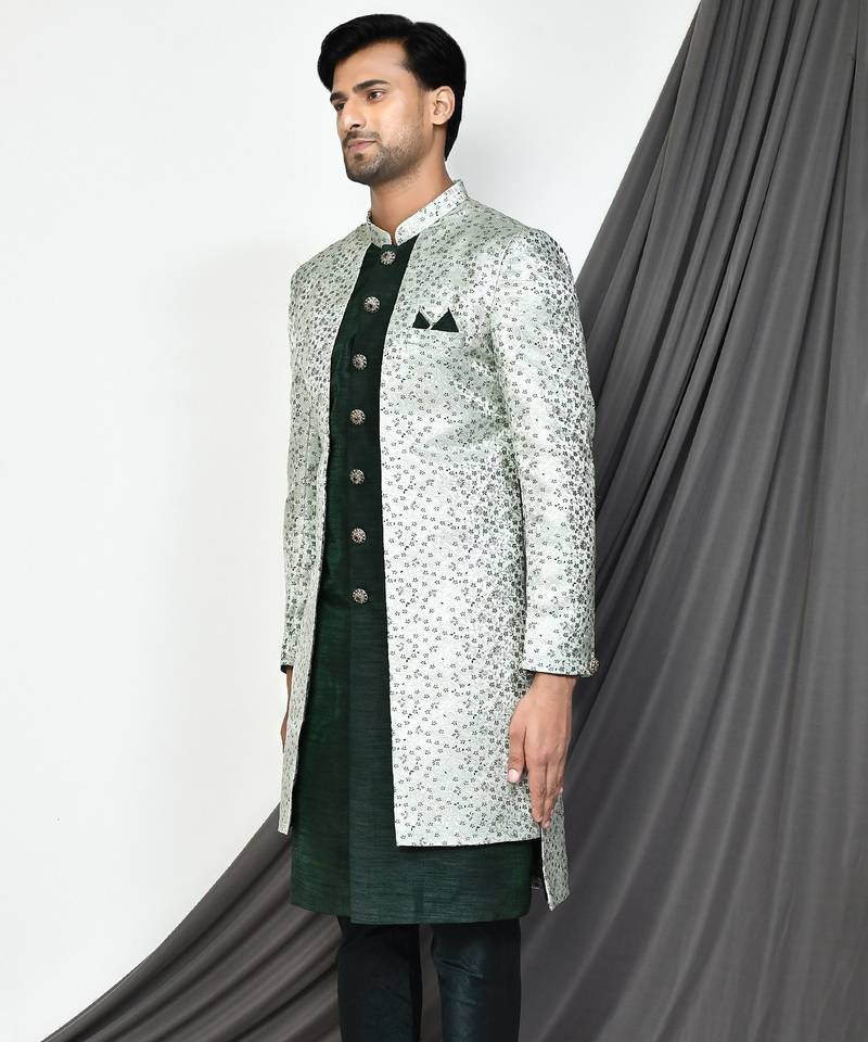 | Product Name | Bottle Green Front Open Pattern Indo Western | |