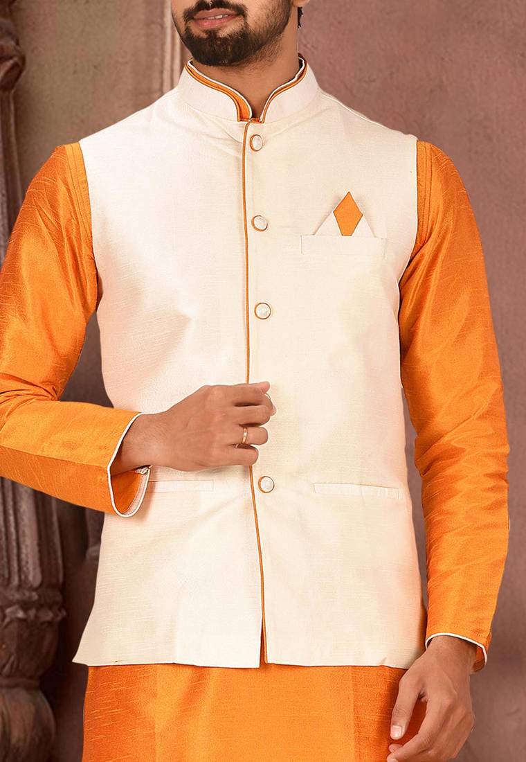 | Product Description | Dipion Art Silk Jacket Kurta Payjama Set With Pipein Contrast Work |