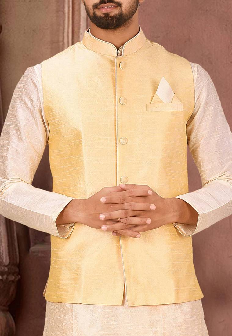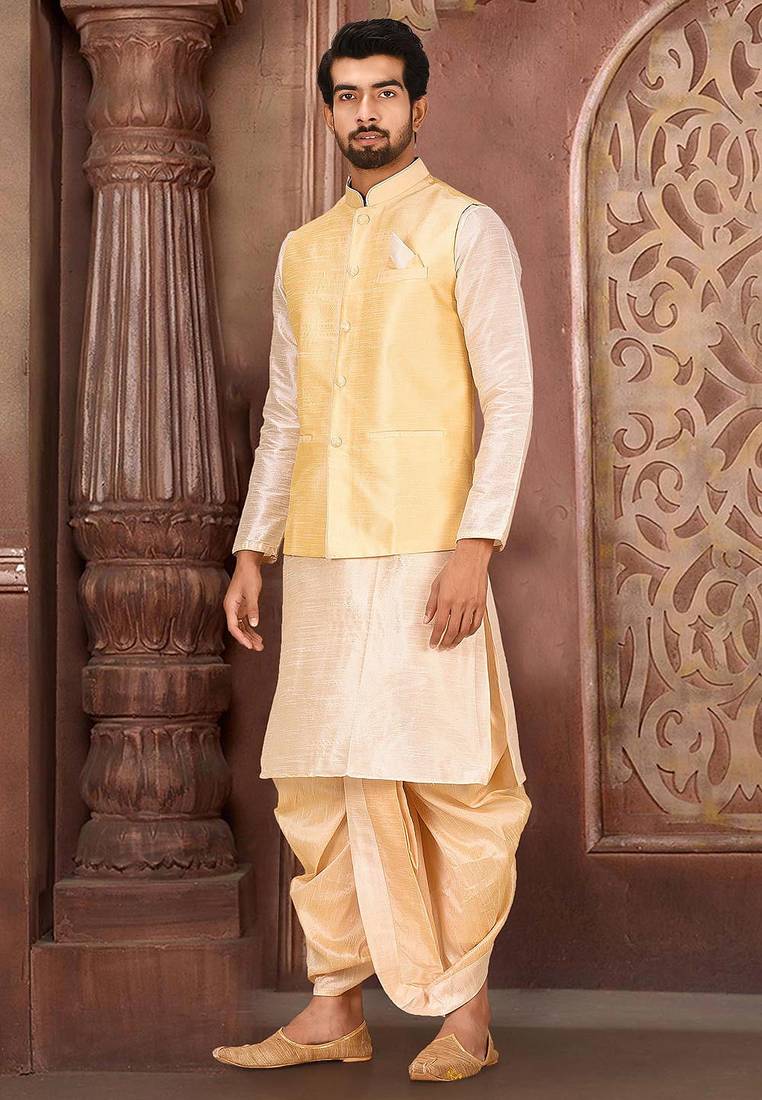| Product Name | Deep Cream Dupon Art Silk Kurta, Jacket With Matching Dhoti | |