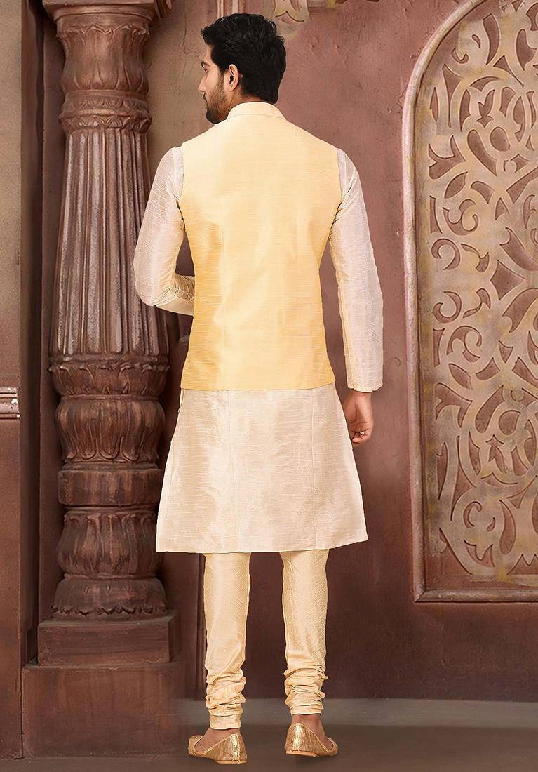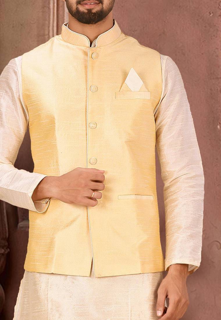 | Product Description | Dipion Art Silk Jacket Kurta Payjama Set With Pipein Contrast Work |