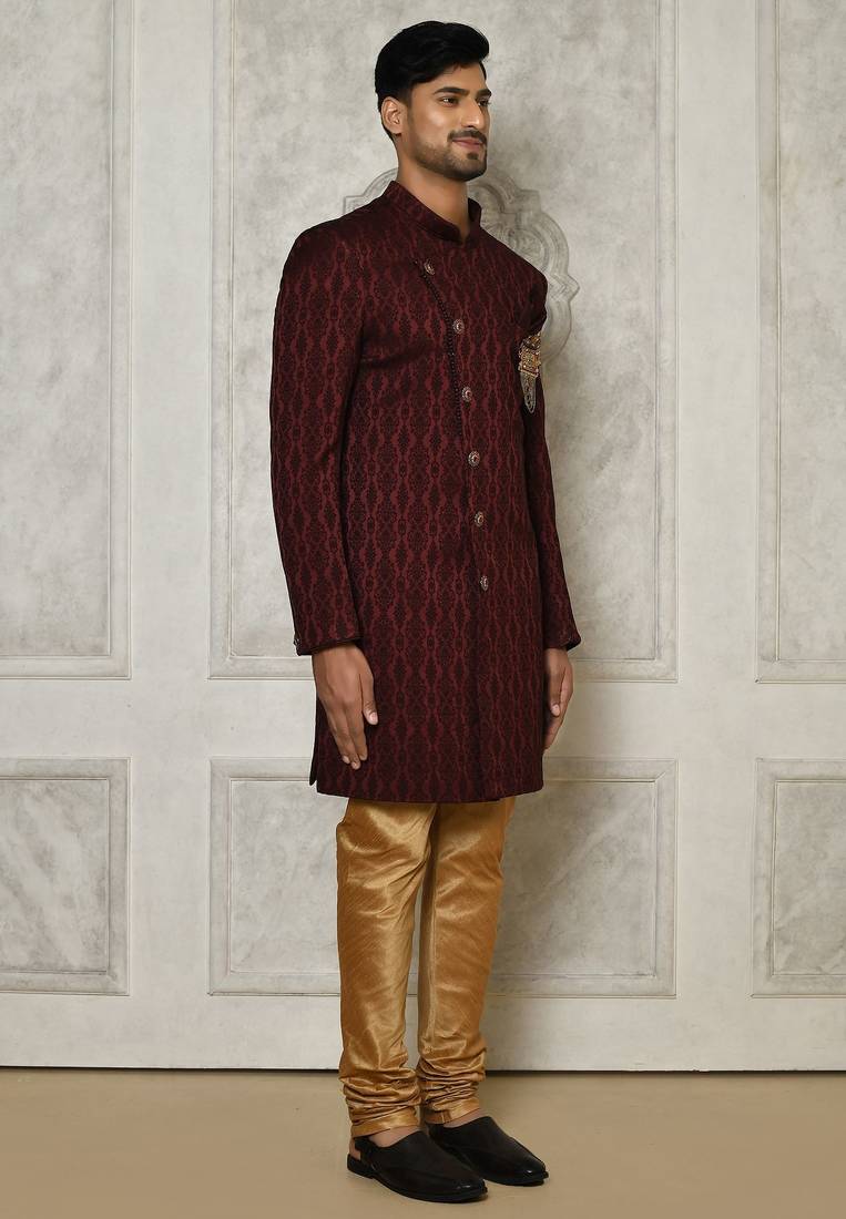 | Product Name | Mahroon Anghrakha Pattern Work Indo Western | |