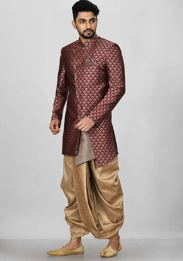 | Product Name | Mahroon Anghrakha Pattern Work Indo Western | |