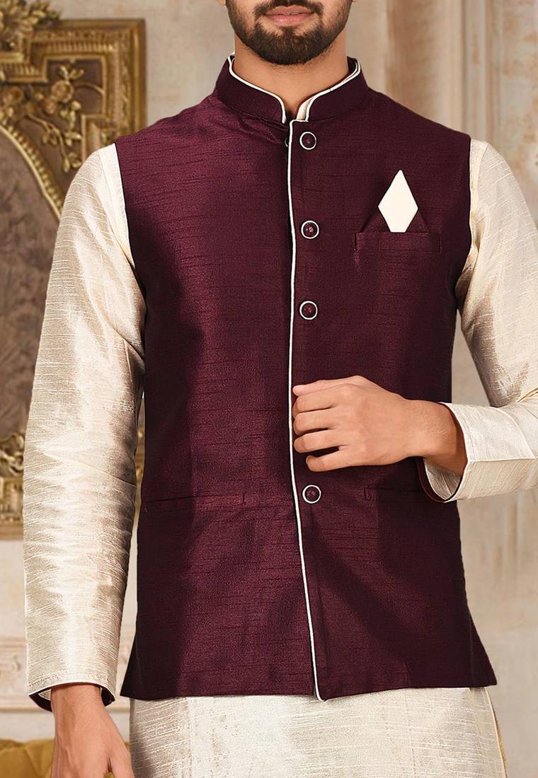 | Product Description | Dipion Art Silk Jacket Kurta Payjama Set With Pipein Contrast Work |
