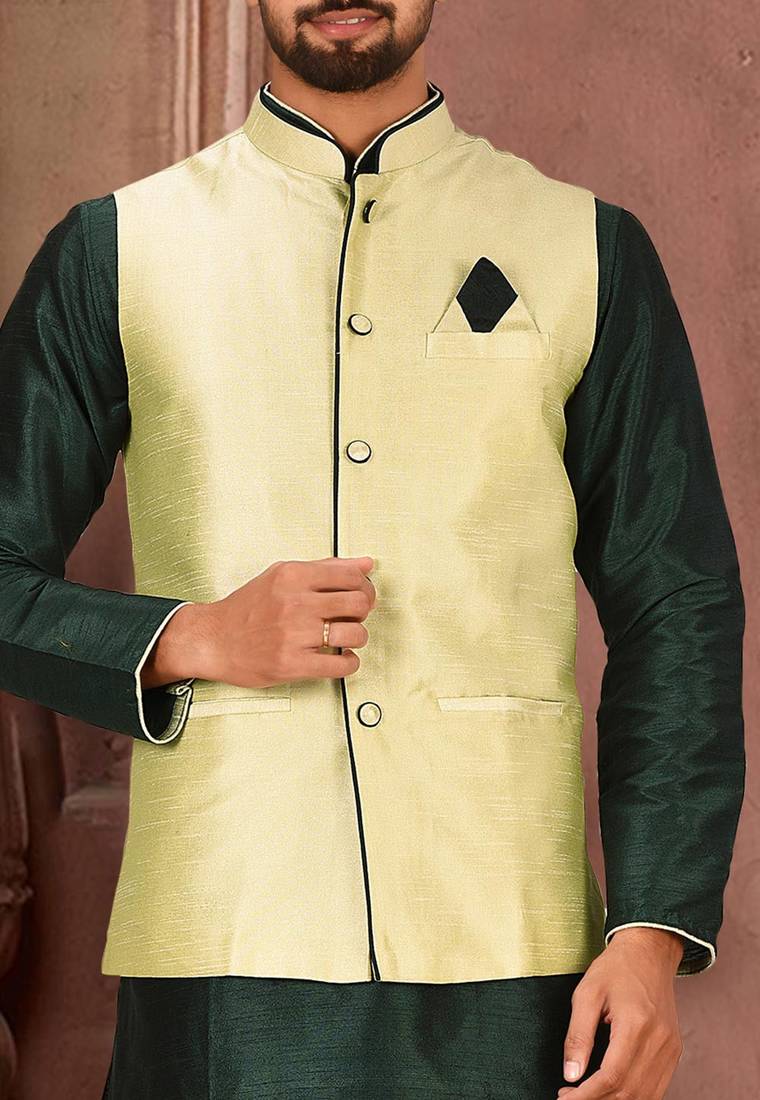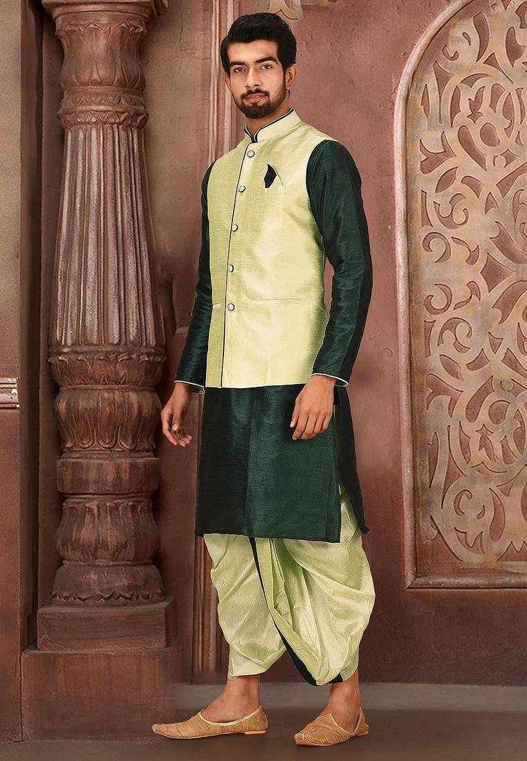 | Product Name | Rama Green Dupon Art Silk Kurta, Jacket With Matching Dhoti | |