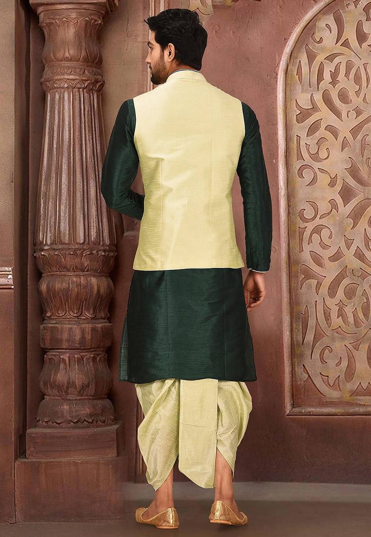 Rama green dupon art silk kurta, jacket with matching dhoti