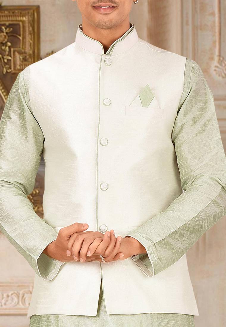 | Product Name | Sea Green Dupon Art Silk Kurta, Jacket With Matching Dhoti | |