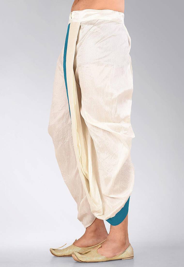 Product Name | White Dupion Art Silk Readymade Dhoti With Patch Work | |