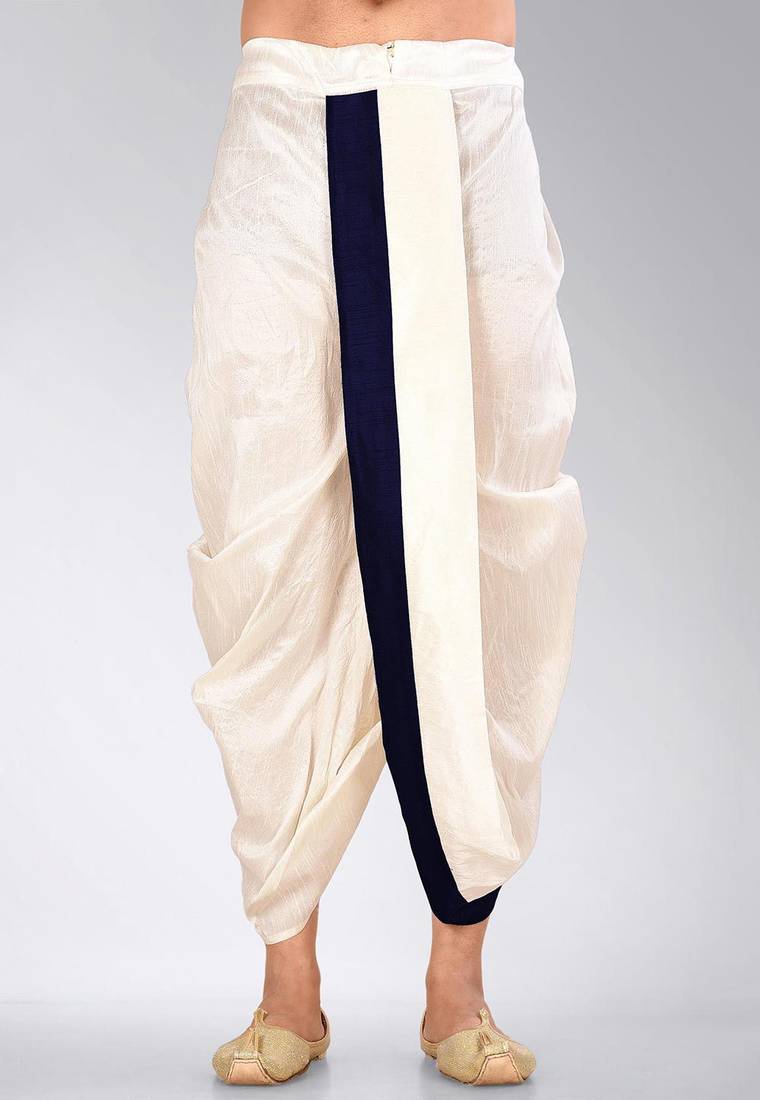 Product Name | White Dupion Art Silk Readymade Dhoti With Patch Work | |