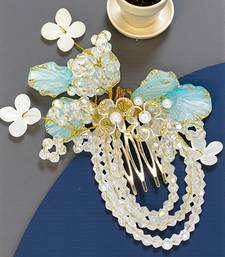 | Product Name | Gold Plated Crystal Beaded Embellished Light Blue Comb Hair Pin | |