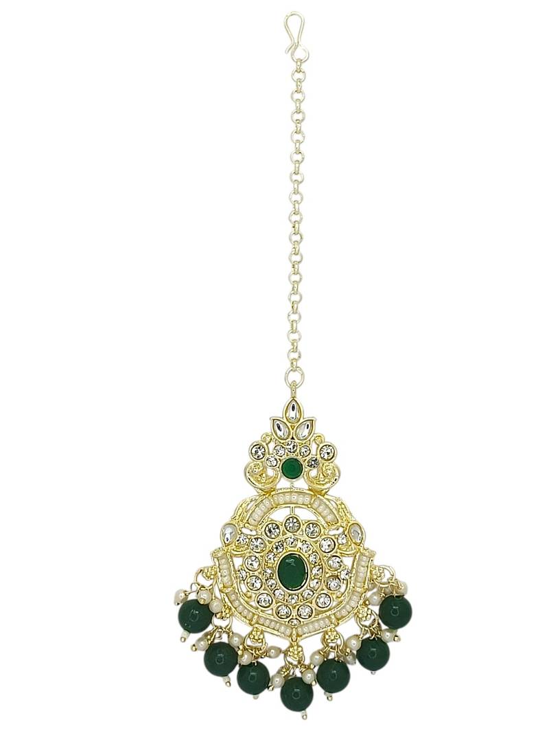 Product Name Gold Plated Cubic Zircon Studded Green Earrings With Maangtikka Set