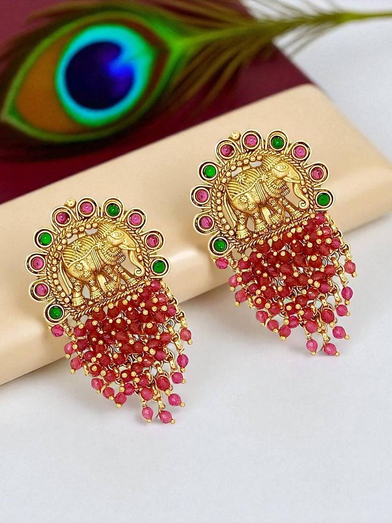 Product Description | Add A Touch Of Heritage Charm To Your Jewellery Collection With The Gold Plated Elephant Design South Indian Earrings For Women. Inspired By Traditional Temple Jewellery, These Earrings Feature An Intricately Crafted Elephant Motif, Symbolizing Strength, Wisdom, And Prosperity. The Radiant Gold Plating Enhances Their Regal Look, Making Them A Perfect Choice For Weddings, Temple Visits, And Festive Occasions. • Traditional South Indian Design – Beautiful Elephant Motif Earrings Reflecting Cultural Elegance And Symbolism.