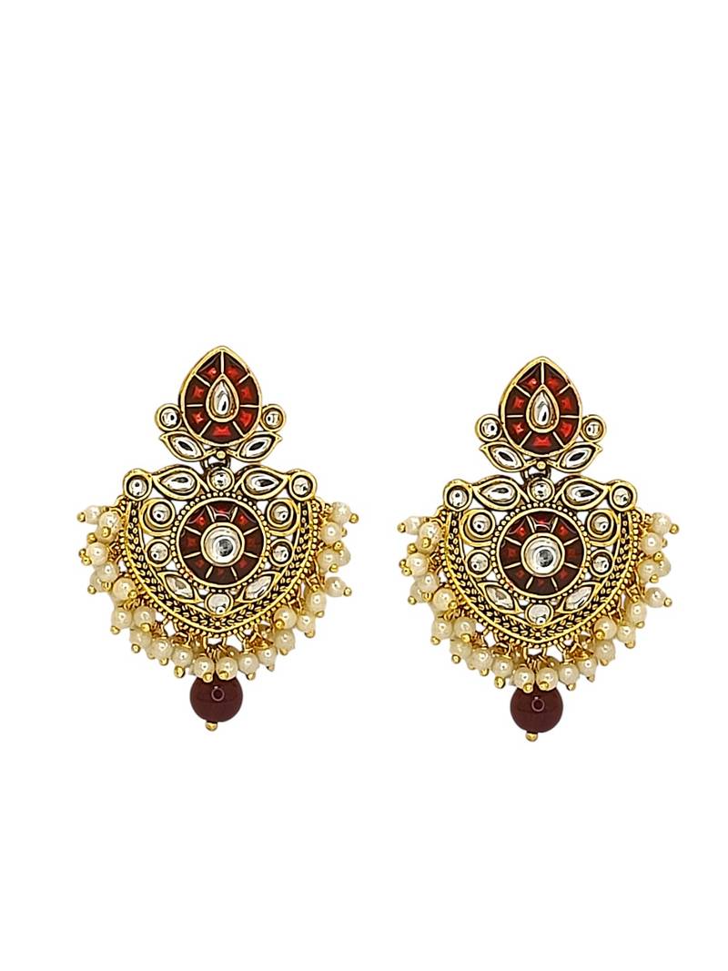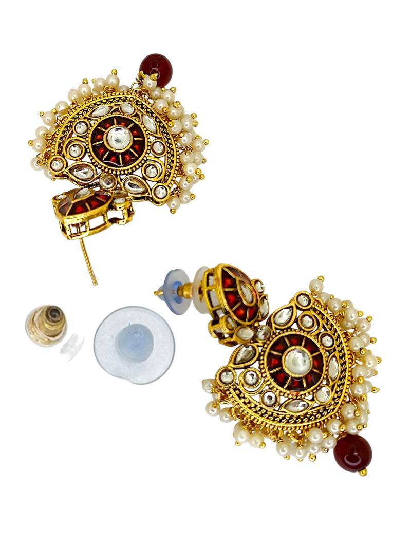 | Product Description | Gold Toned Peacock Design Necklace Set, Studded With Kundan, Maroon Stone Abd Beads. Secured With Drawstring Closure. A Pair Of Matching Jhumka Earrings, Secured With Post And Back Closure. A Matching Maang Tikka. Secured With S Hook Closure.