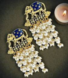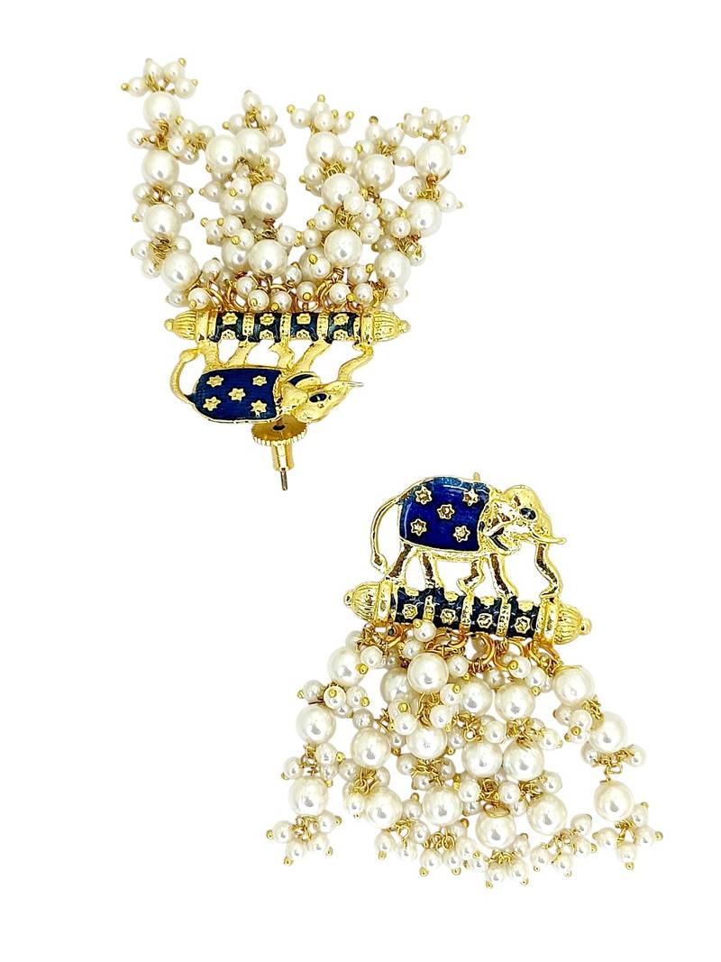 | Product Description | Gold Toned Jaipur Style Elephant Tassel Navy Blue Meenakari Enamel Earrings, Studded With Beads Danglers. Secured With Post And Back Closure