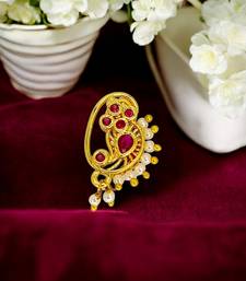 | Product Description | Gold Toned Paisley Design Clip On Nose Pin Nose Ring, Studded With Red Stone And Beads. Secred With Clip On Closure.