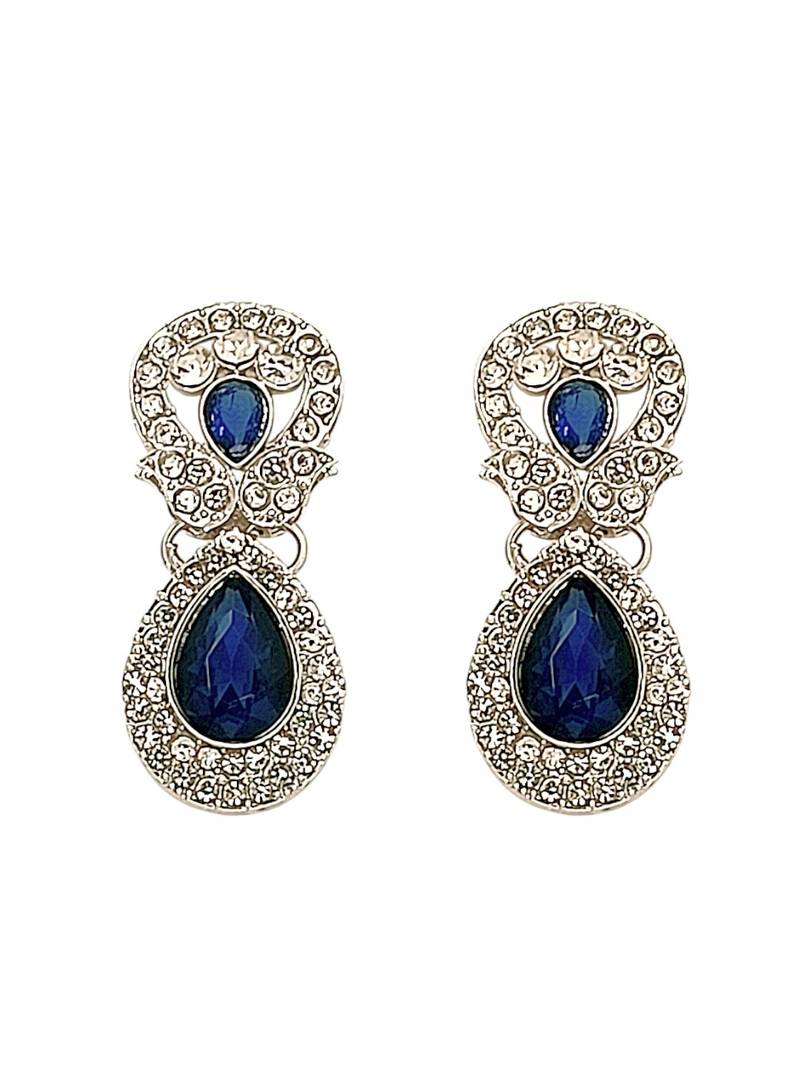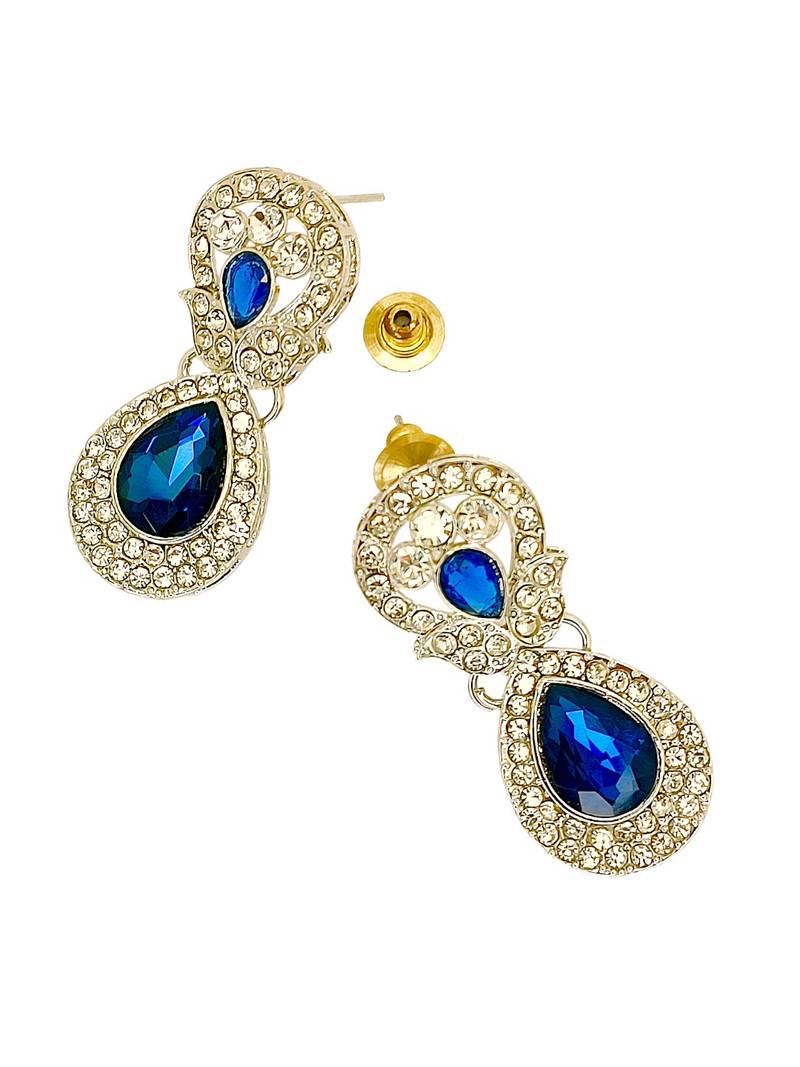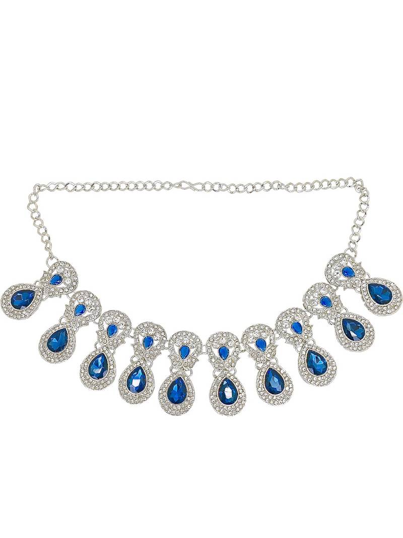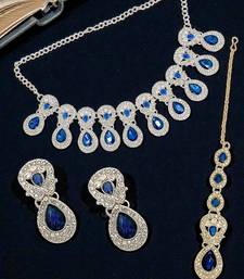 | Product Name | Rhodium Plated Blue Teardrop Cubic Zircon Necklace Maang Tikka Set | |
