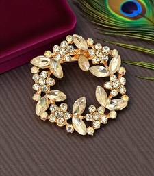 | Product Description | Rose Gold Toned Floral Design Wreath Saree Pin, Studded Crystal And Cubic Zircon. Secured With Pin Closure.