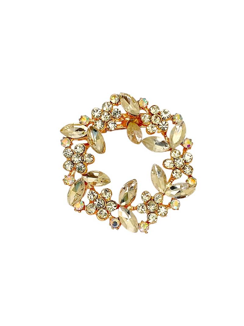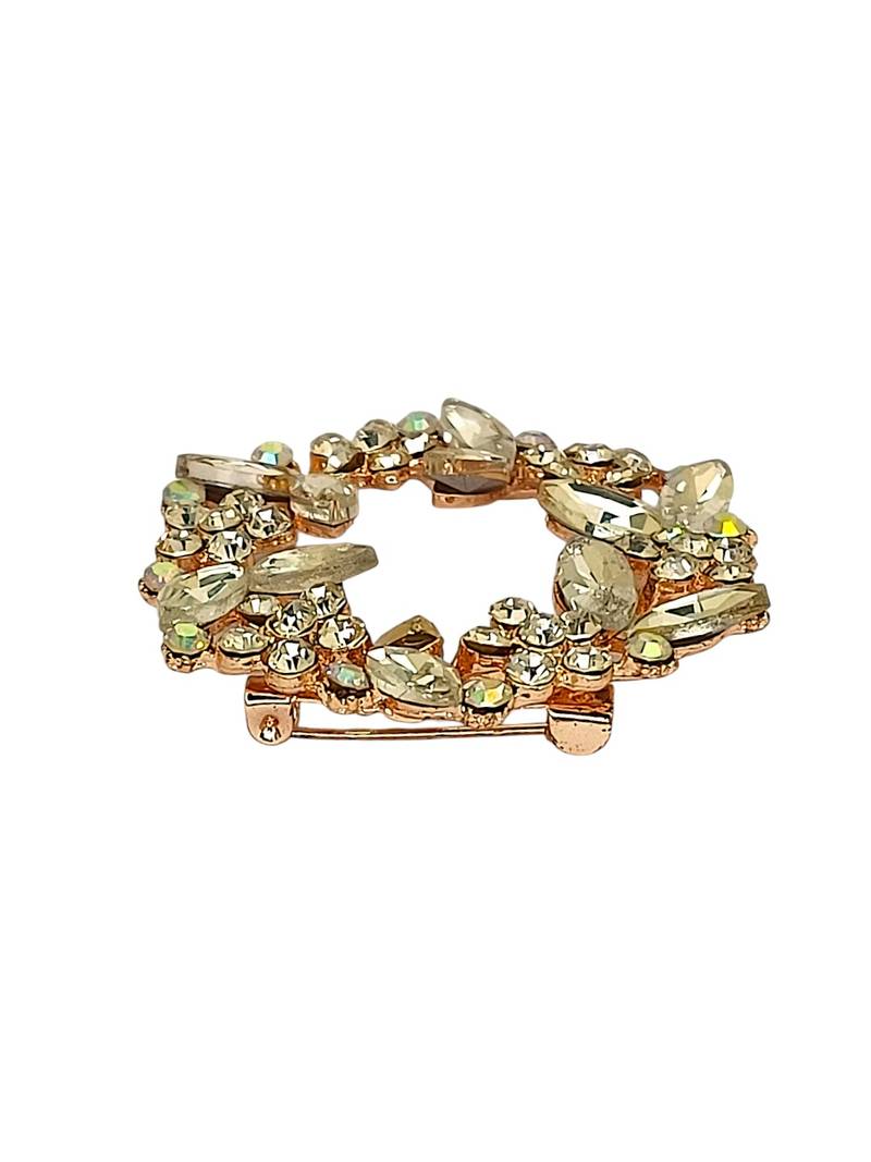 Rose gold plated crystal cz wreath saree pin