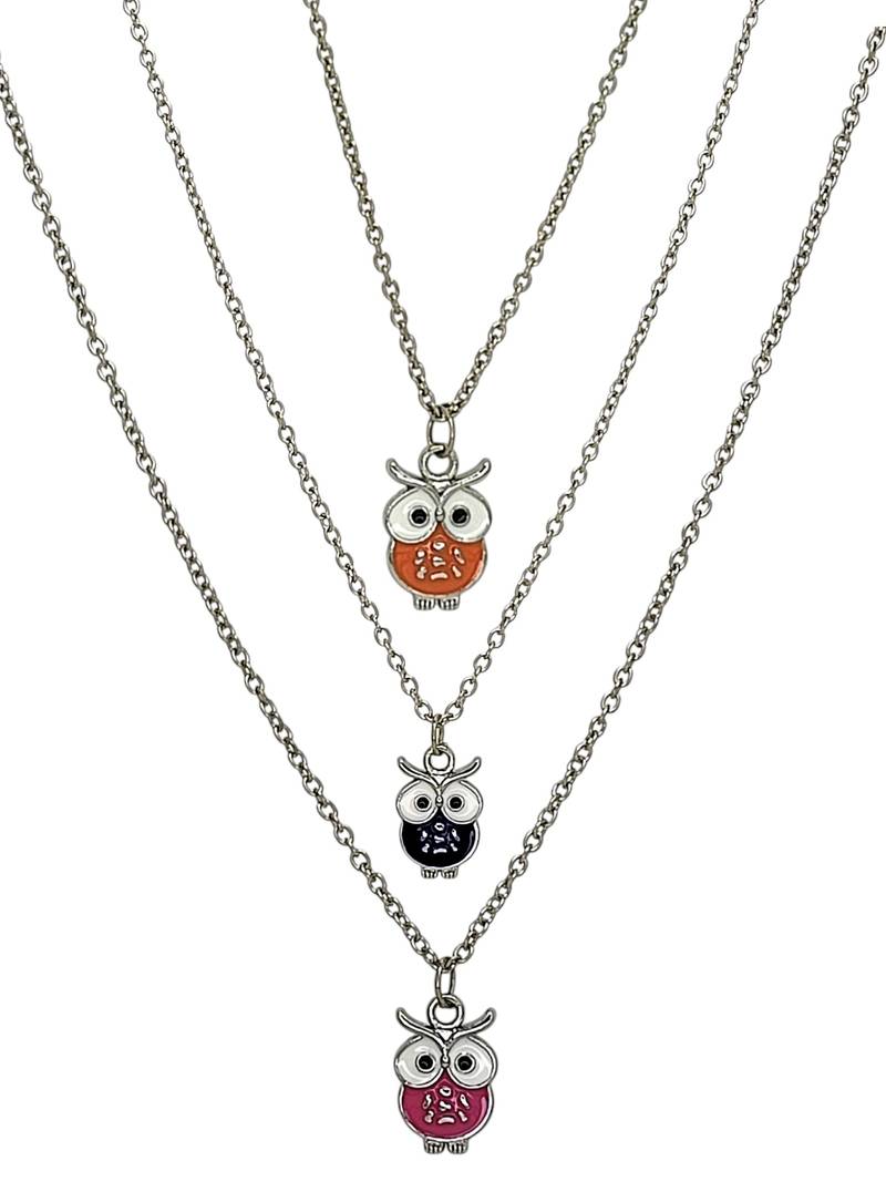 | Product Description | This Set Of Three Silver Toned Necklaces Features Adorable Owl Pendants In Navy, Orange, And Pink Colors, Offering A Vibrant And Playful Mix To Suit Different Styles And Moods. Each Pendant Is Paired With A Matching Chain And Secured With An Easy To Use S Hook Closure, Making The Set Both Charming And Convenient For Everyday Wear. Chain Length: 22cm, Width: 0.2cm, Pendant Length: 1.8cm, Width: 1.2cm |