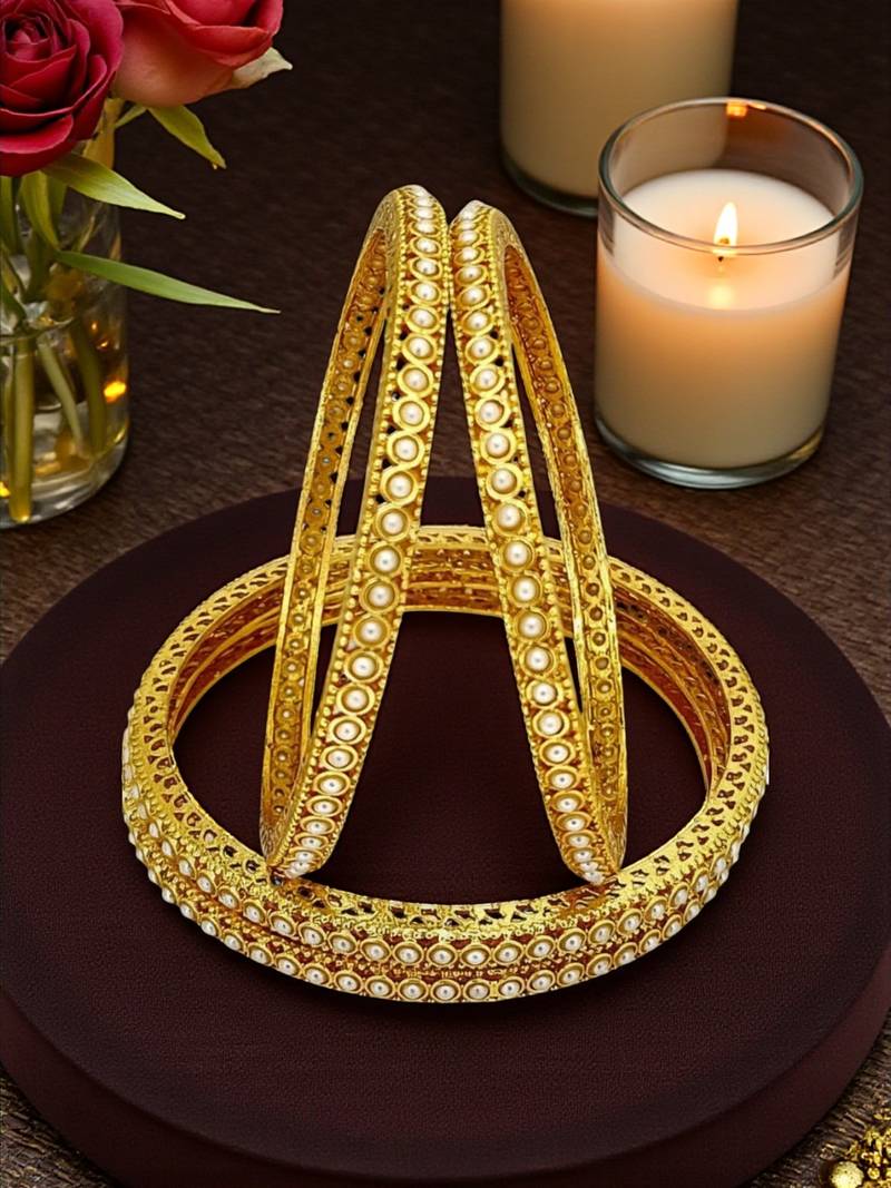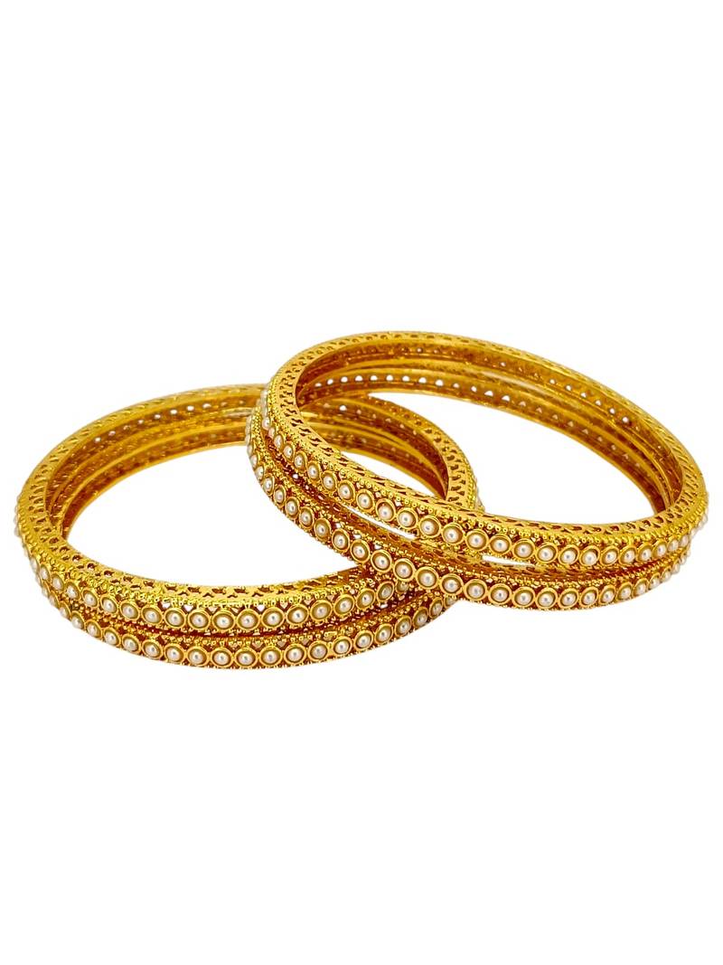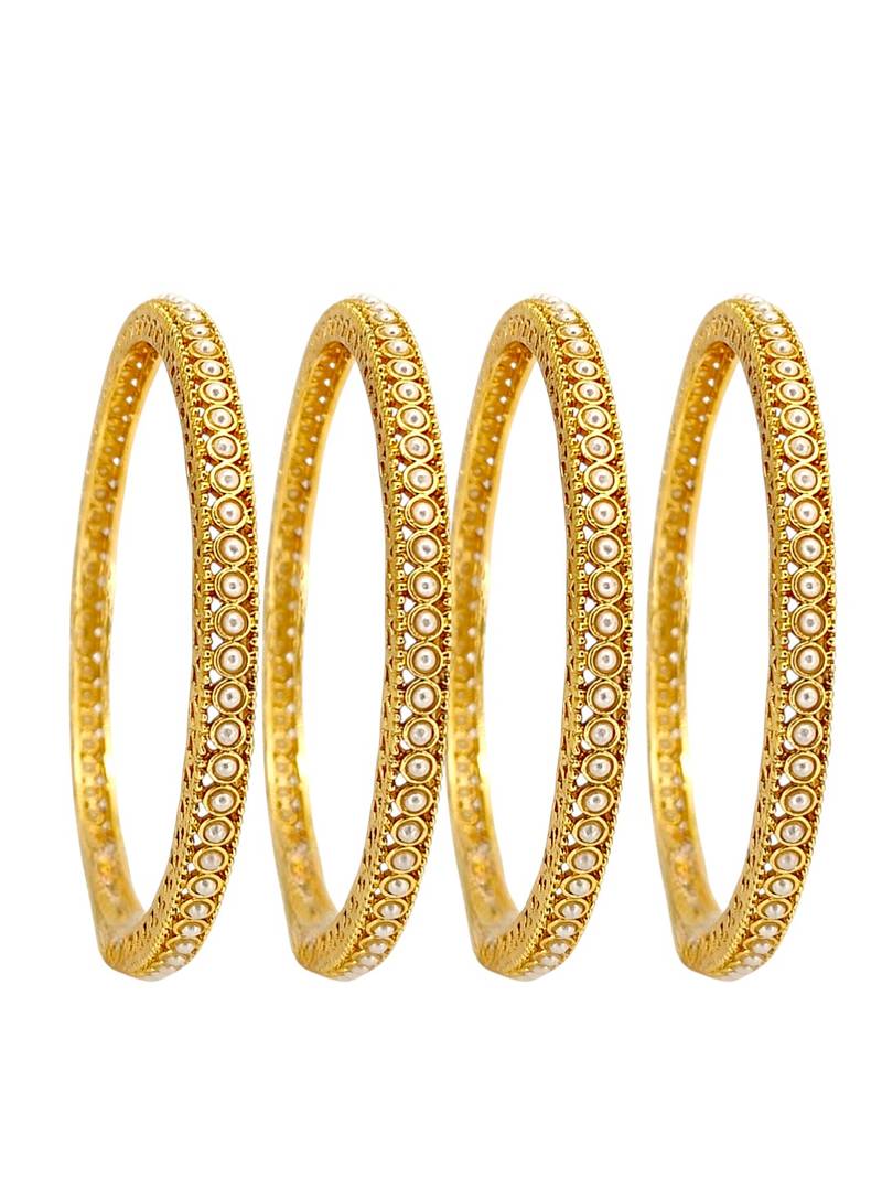 | Product Description | Set Of 4 Gold Toned Sleek Beads Studded Bangles Set. Secured With Slip On Closure