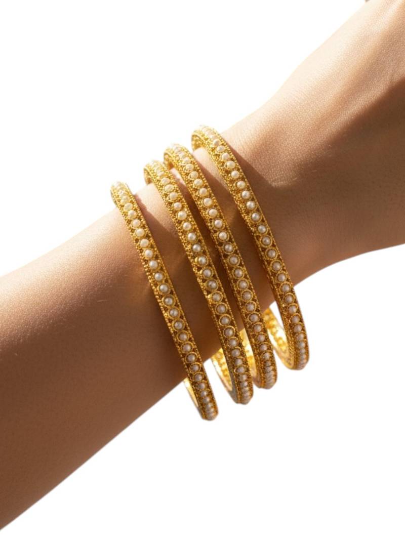 | Product Name | Set Of 4 Gold Plated Sleek Moti Bangle Set | |