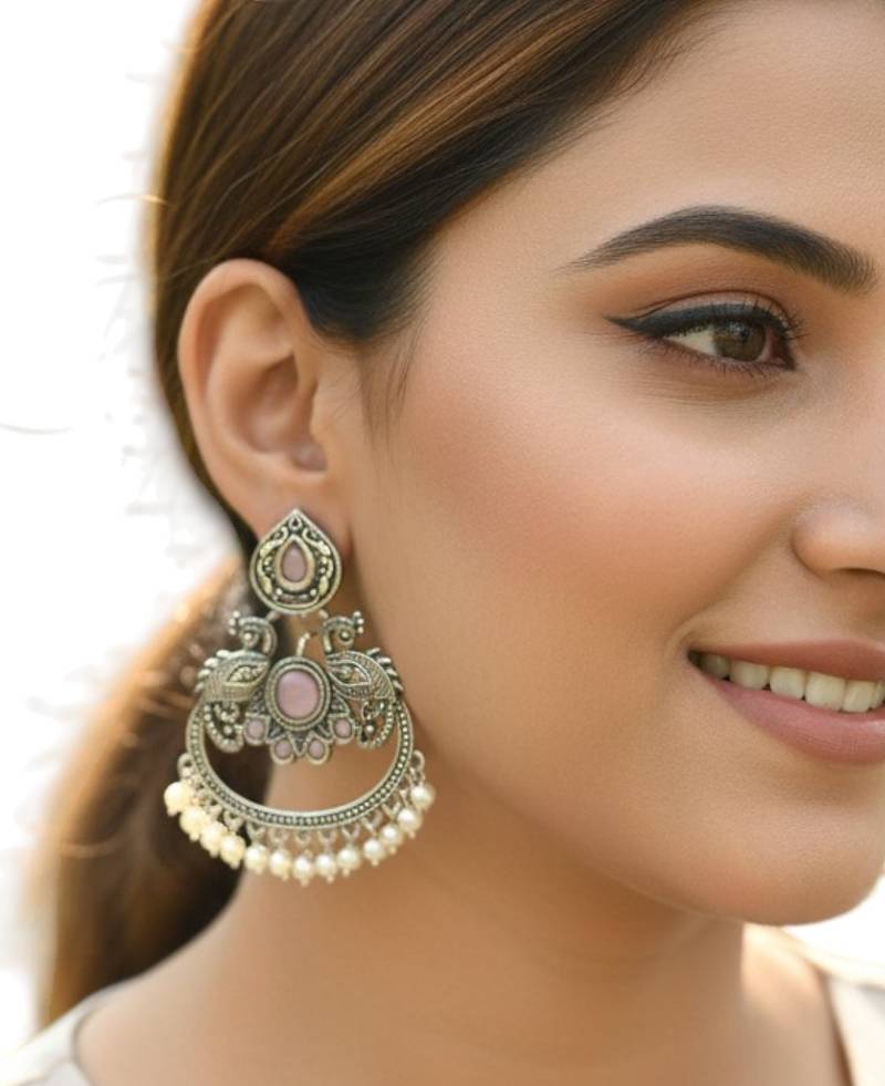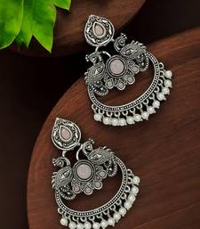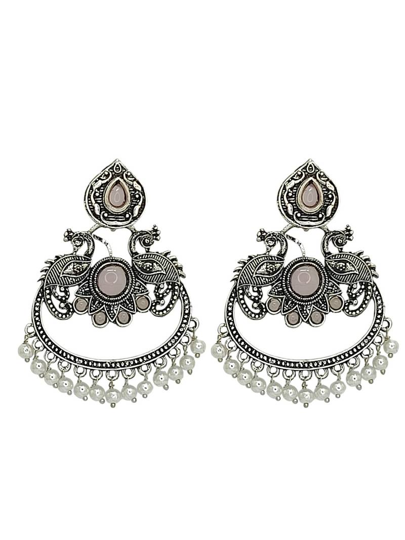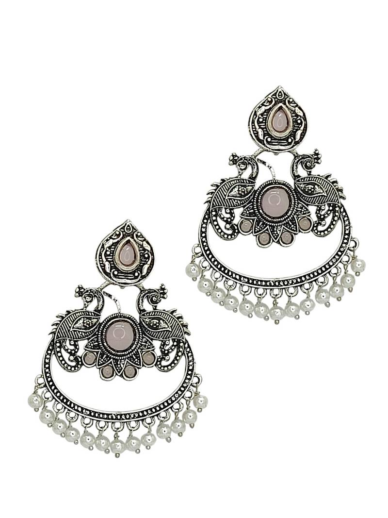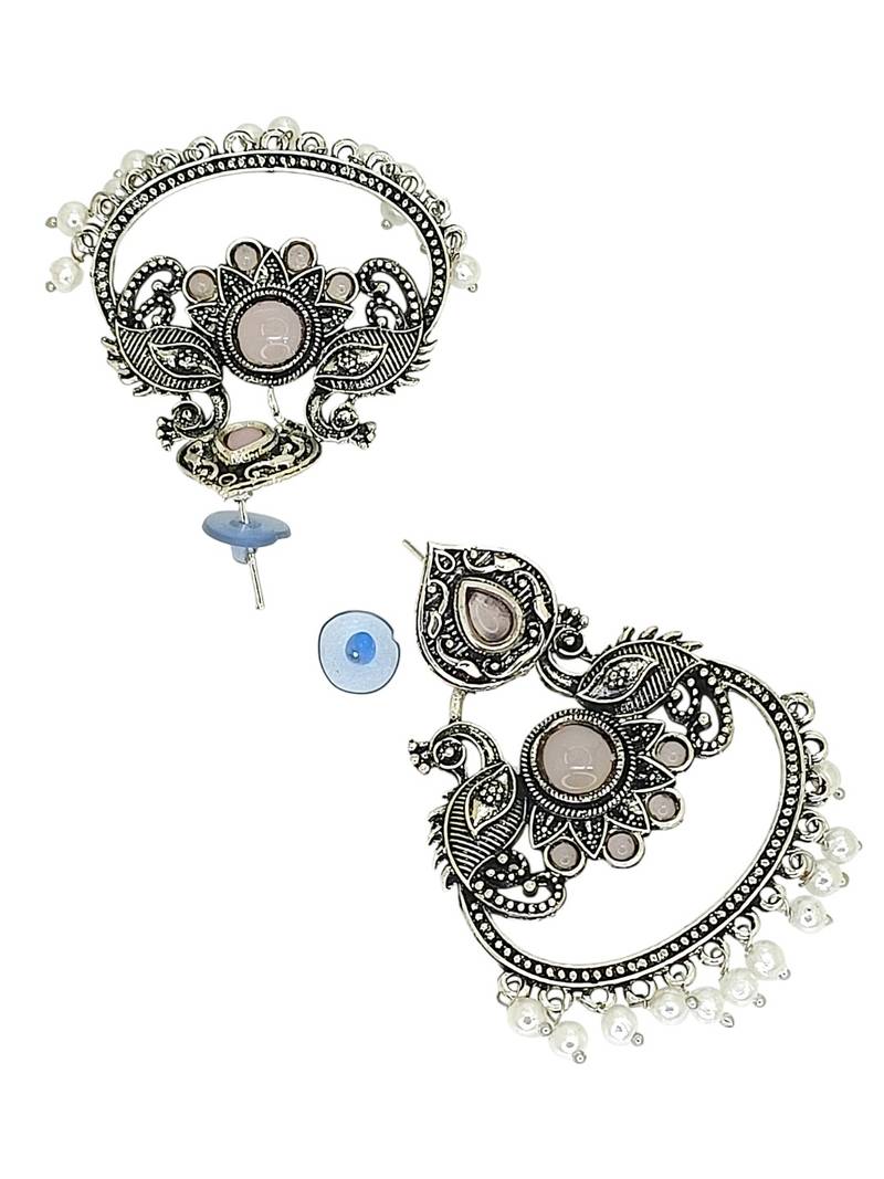| Product Description | Silver Oxidised Peacock Design Chandbali Studded With Mauve Stones And Beads. Secured With Post And Back Closure.