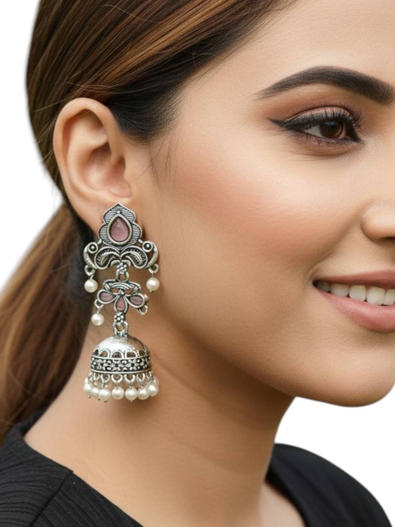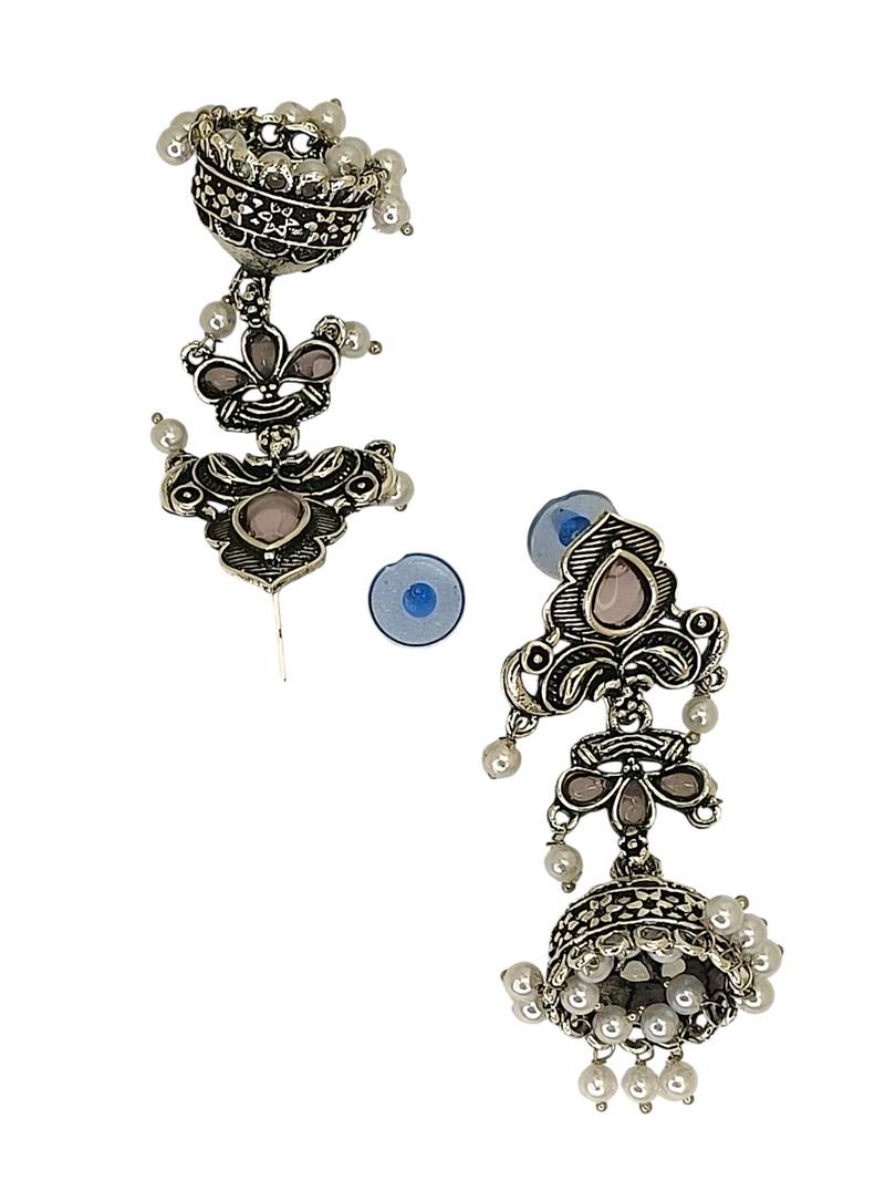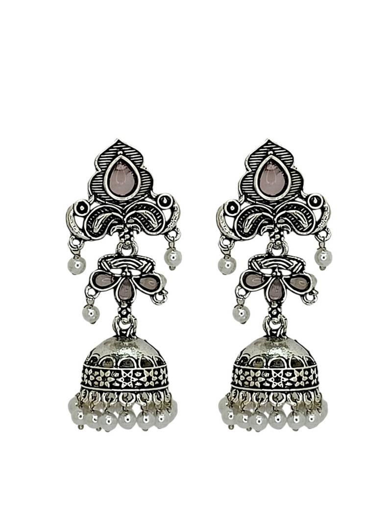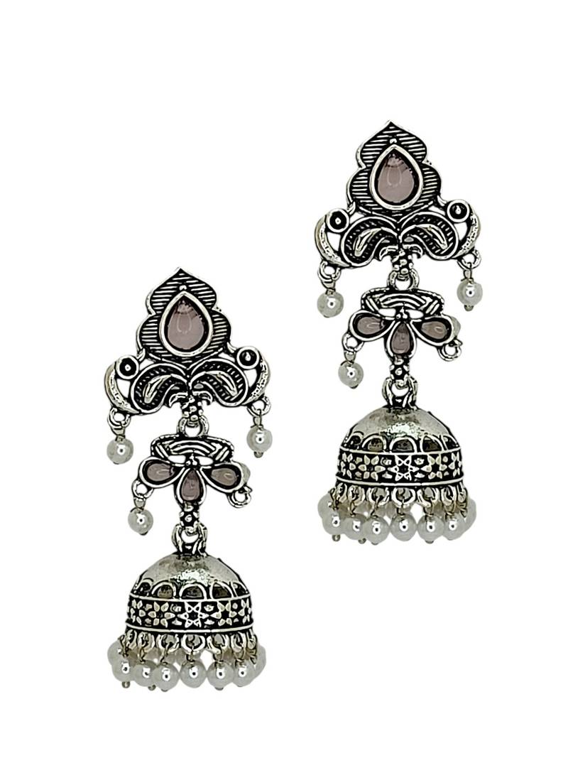 | Product Name | Silver Oxidised Peacock Design Mauve Jhumka Earrings | |