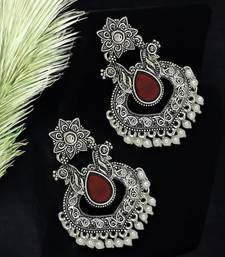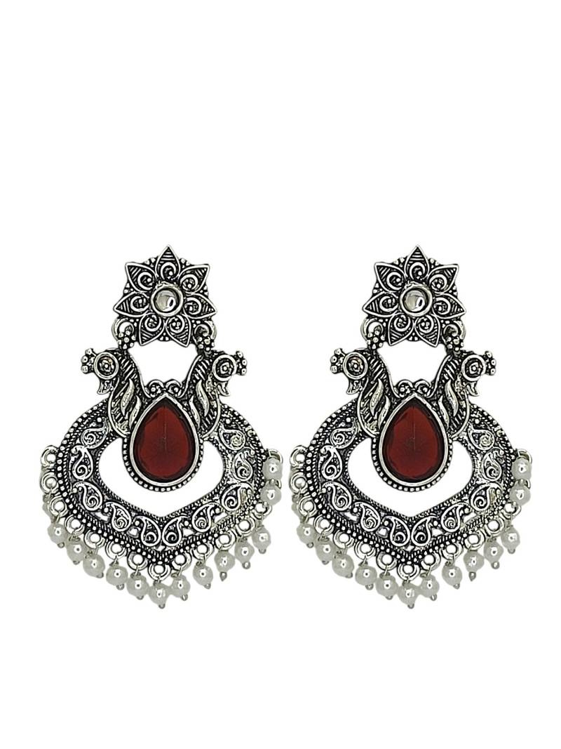 | Product Description | Silver Oxidised Peacock Design Chandbali Studded With Red Stones And Beads. Secured With Post And Back Closure.