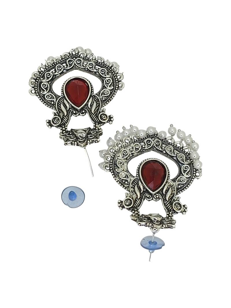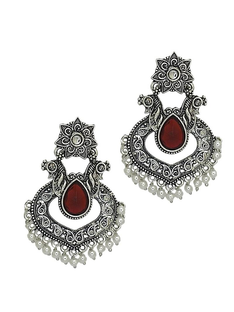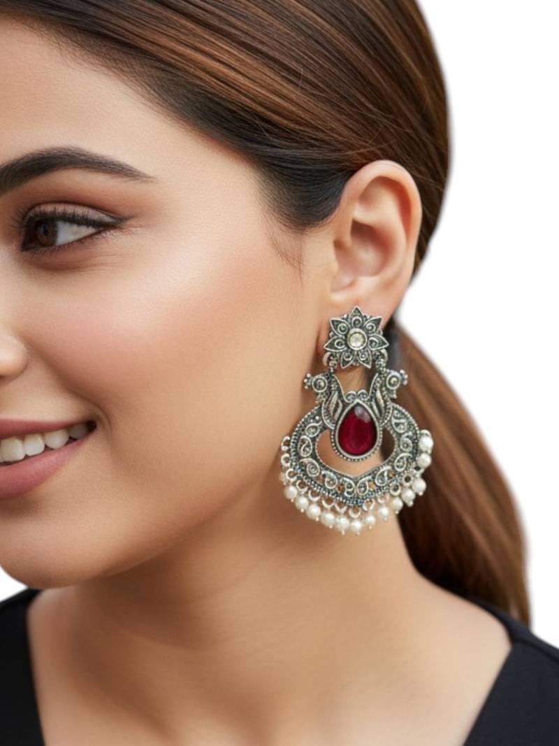| Product Name | Silver Oxidised Red Stone Chandbali Earrings | |