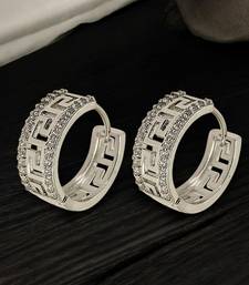 | Product Description | Silver Toned Greek Key Design Hoop Earrings, Studded With American Diamond. Secured With Insert Closure