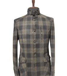 Charcoal brown checkered bandhgala blazer – wool blend fabric