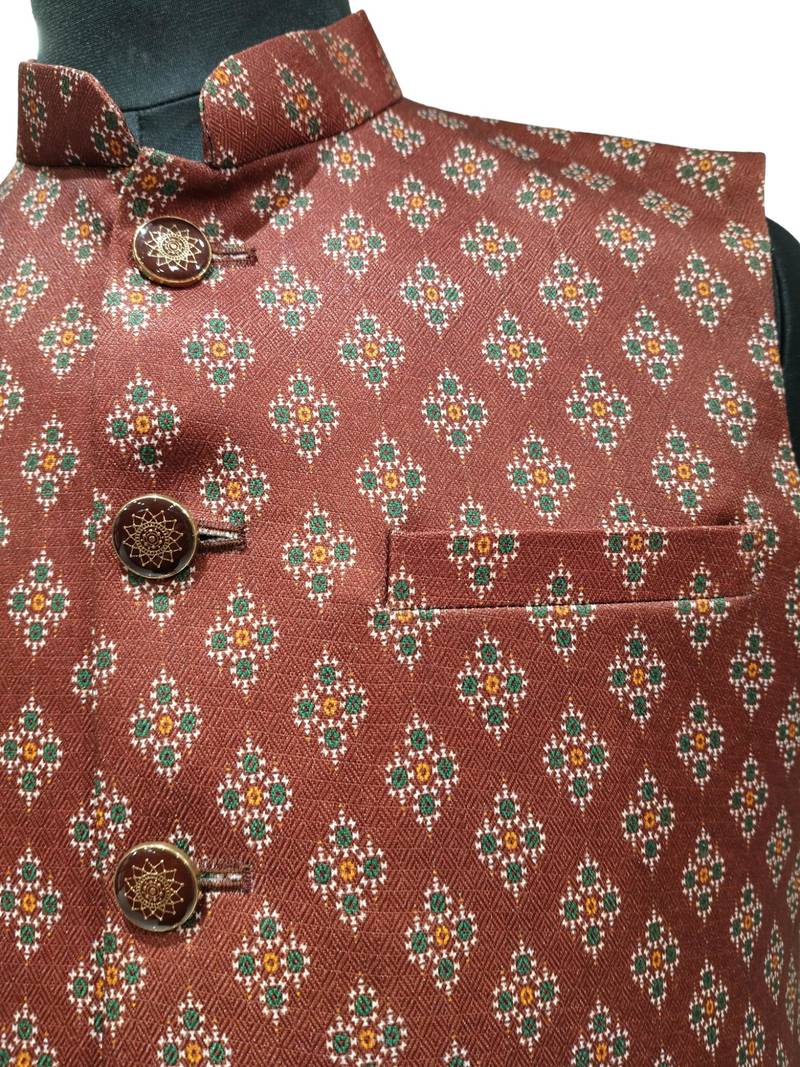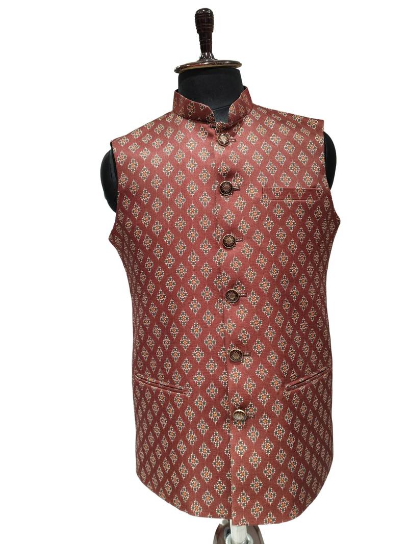 | Product Name | Maroon Print Dupon Art Silk Nehru Jaket | |