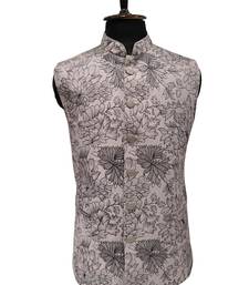 | Product Description | This Is A Men's Ethnic Sleeveless Nehru Jacket, Also Referred To As A Bandhgala Or Modi Jacket. The Jacket Showcases A Refined Pastel Base Color With A Striking Black Floral Pattern That Is Intricately Embroidered Throughout The Garment, Giving It A Rich And Festive Appearance. The Jacket Features A Mandarin Collar, Front Button Closure With Five Decorative Buttons, And Includes A Left Breast Pocket For A Classic Touch. The Fabric Has A Soft, Textured Finish With Floral Threadwork That Adds Depth And Elegance, Suitable For Traditional As Well As Contemporary Occasions.
