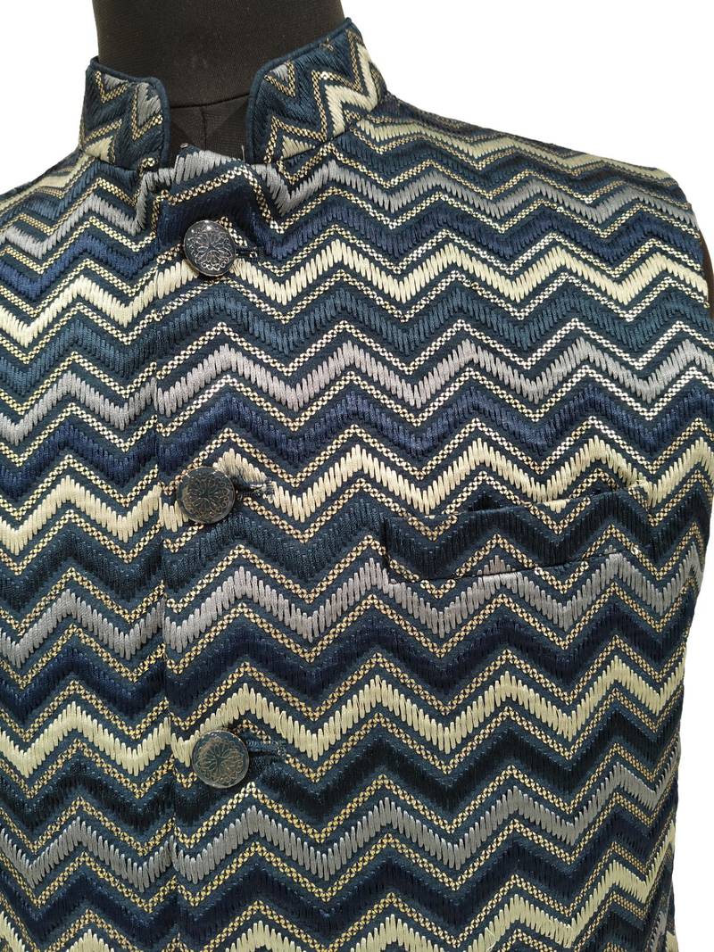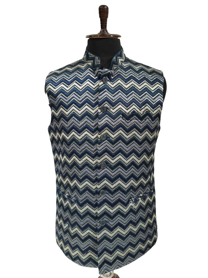 | Product Name | Navy Blue Chevron Zigzag Pattern Art Silk Nehru Jaket | |