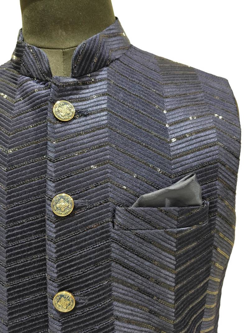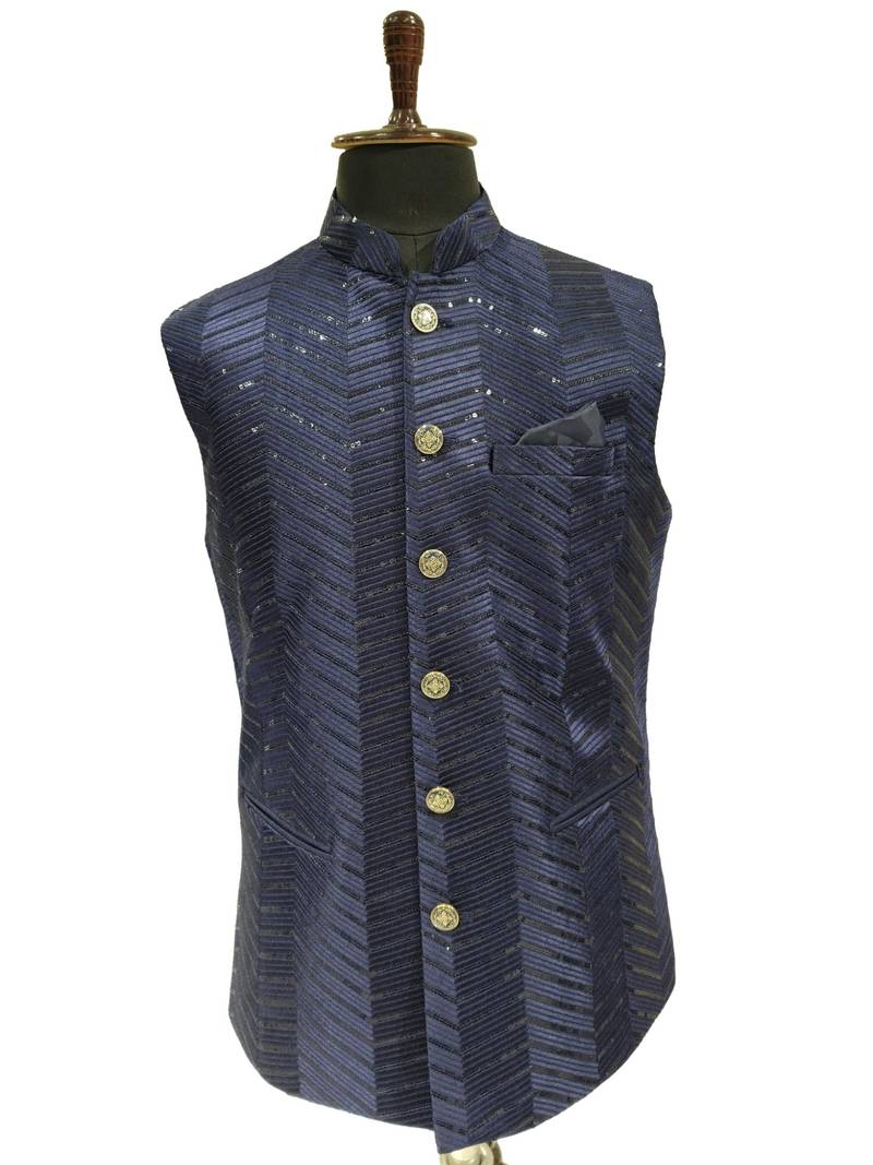 | Product Name | Navy Blue Sequin Embroidery Art Silk Nehru Jaket | |