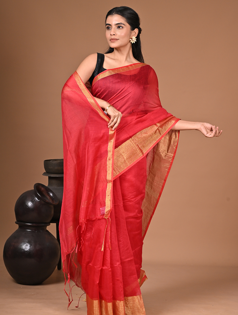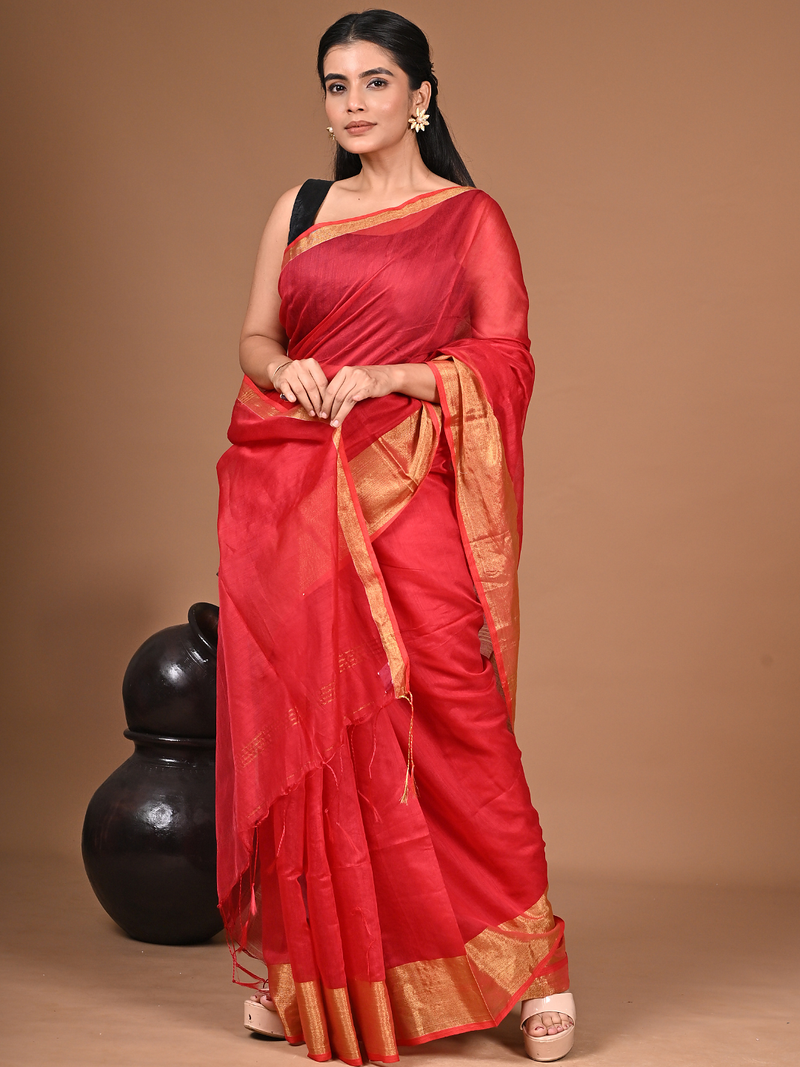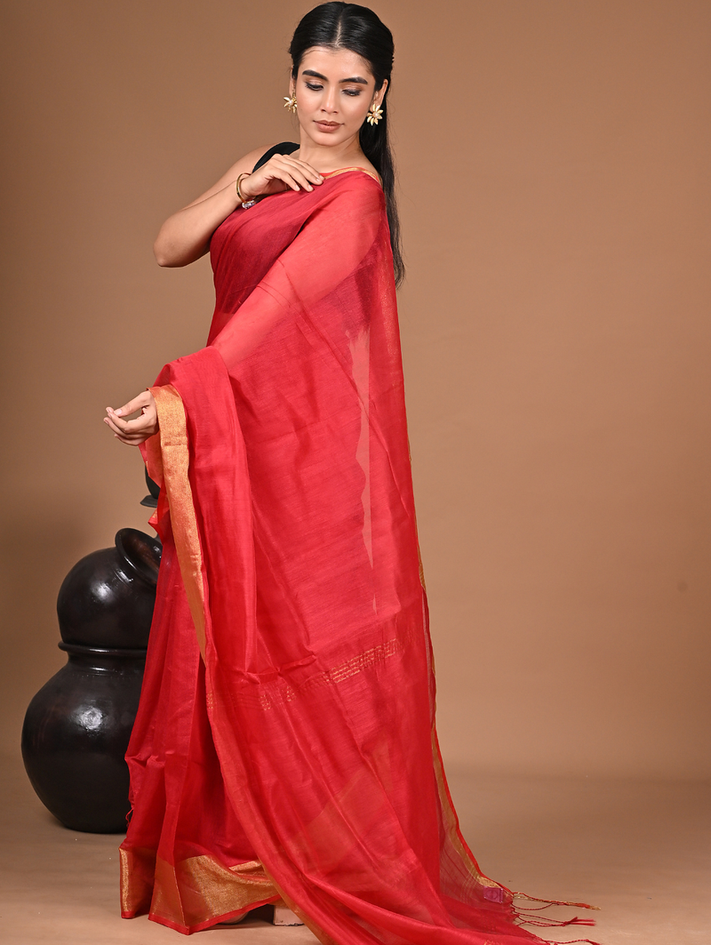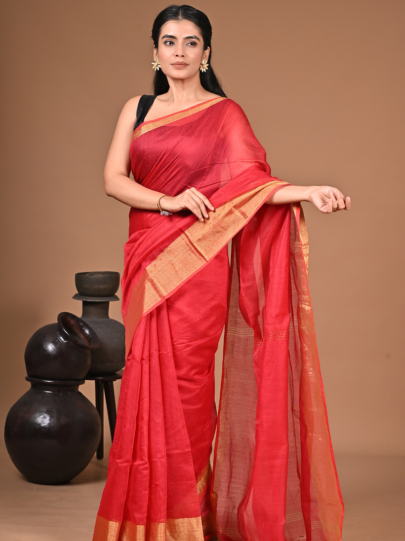 | Product Name | Red Linen Saree With Unstitched Blouse Piece Elegant Traditional Saree | |