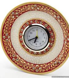 | Product Description | 22 K Gold Embossed Round Alarm Clock. Artifact Is Jewelled With Meenakari And Kundan Work A Masterpiece In Marble! Adorned With Subtle Stokes Of Gold Work To Add Brilliance To Your Home Decor.;Size 6 Inches; A Perfect Gift For Any Occasion;These Marvelous Handcrafted Artifacts From Rajasthan Carved Out Of Pure Makarana Marble ( The Best Marble Of India) Are The Distinguished Piece Of Art To Enhance The Beauty Of Your Interiors. The 23 K Gold Foil Work Embossed On White Marble Caving Are The Unrivalled Piece Of Craftsmanship. The Range Of Marble Artifacts Is Stunning.The Range Includes Pots, Figurines, Marble Paintings & Utility Cum Decorative Articles Like Tumblers, Boxes With Lid, Showpieces Etc. The Objects D’art In Marble Are Adorned With Meenakari, Gold Work & Traditional Colors Like Reds & Greens. One Can Select Rich Miniature Paintings, Beautiful Pots & Surahis, Statues, Etc. The Highlight Being The Variety In Shape, Size And Decoration. The Marble Artifacts Are Perfectly Shaped Giving It A Marvellous Outlook.The Purity Of White Marble Is Paired With The Richness Of Gold And Meenakari As Well As Kundan Work. A Unique Artifact! Each Item Is A Work Of Art And Offers Utilitarian Benefits Also, Boxes With Lid To Store Jewellery For Example. The Range Of Miscellaneous Items Is Vast; Brand Aapno Rajasthan |