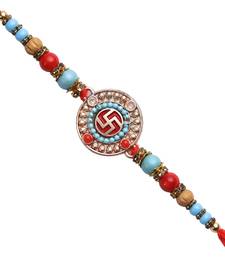 | Product Name | Red & Turquoise Beads Swastik Rakhi | |