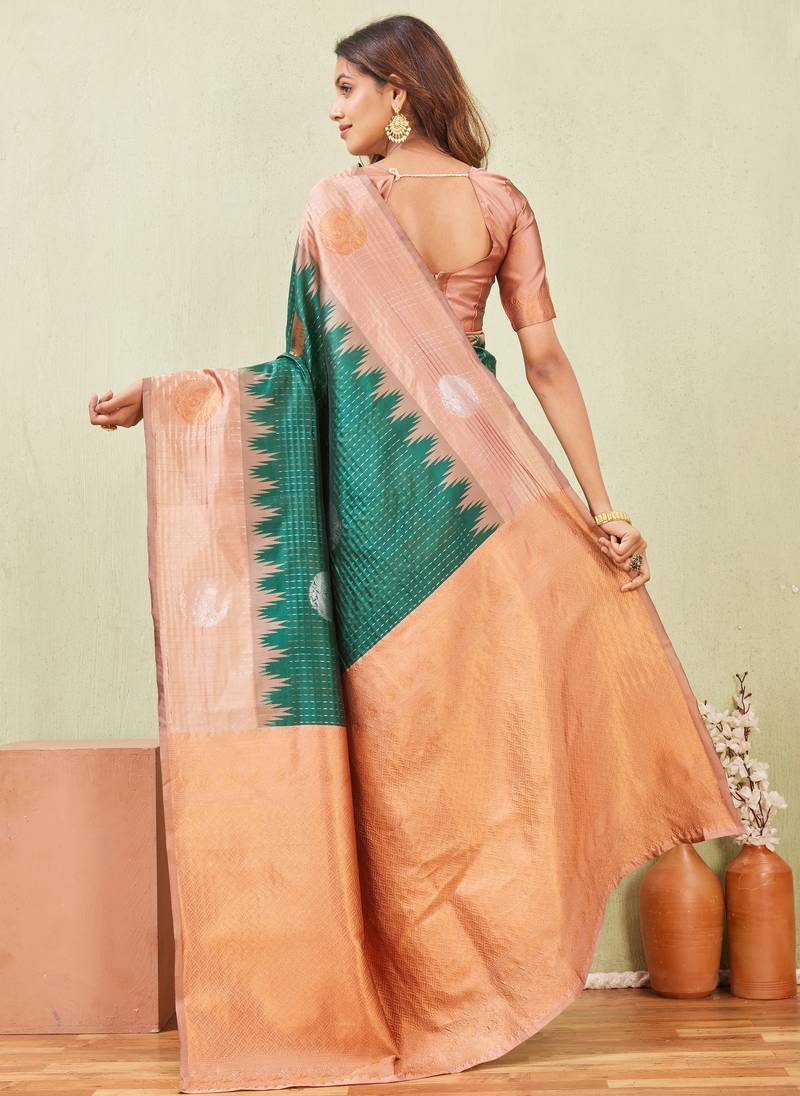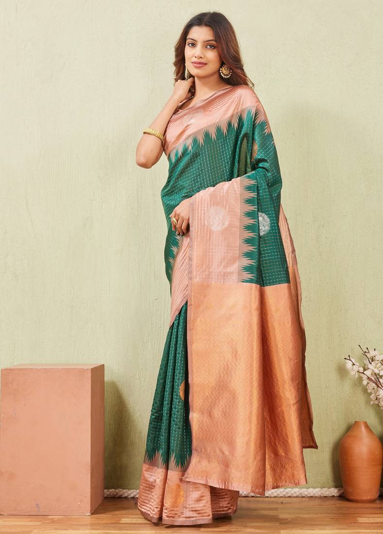 Rust green art silk jacuard work designer party wear saree with unstitched blouse piece