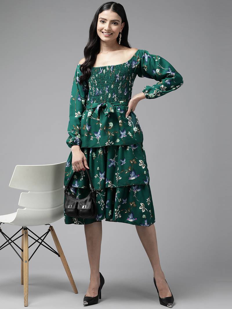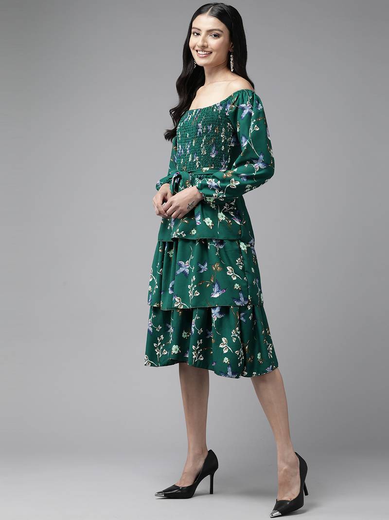 | Product Description | Aarika Women Green Color Floral Print Georgette Dress |