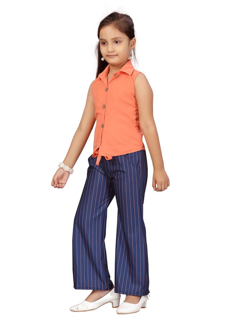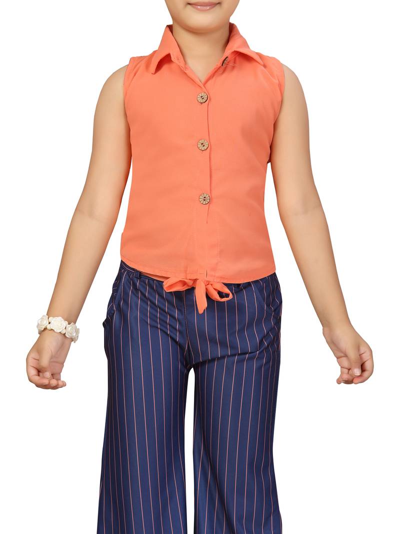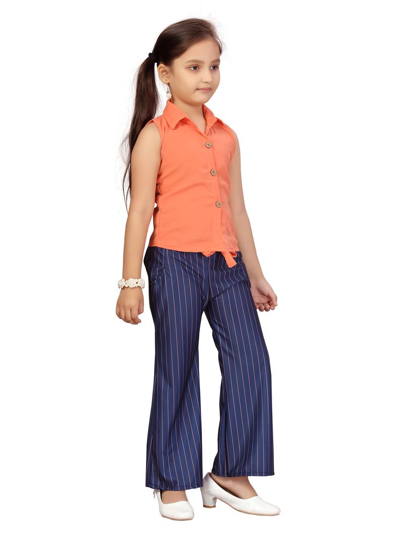| Product Description | Aarika Girls Peach Navy Blue Color Top And Pant |