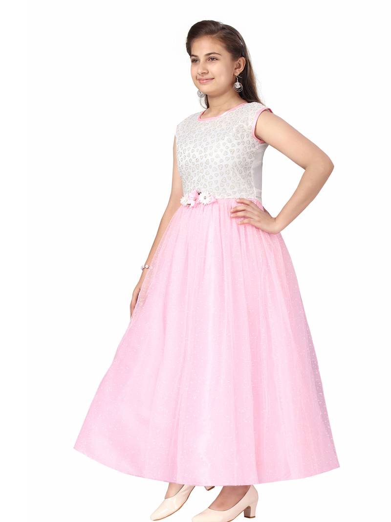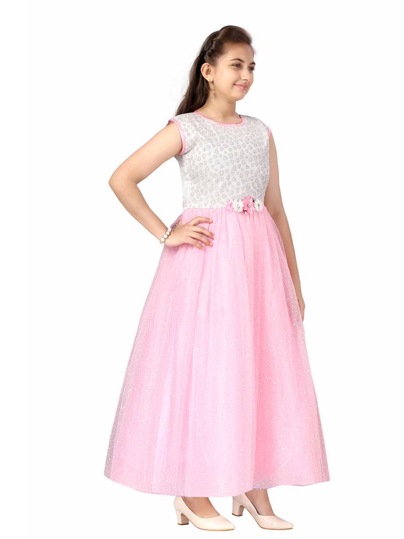 | Product Description | Aarika Girls Pink Color Self Design Polyester Fabric Party Wear Gown |