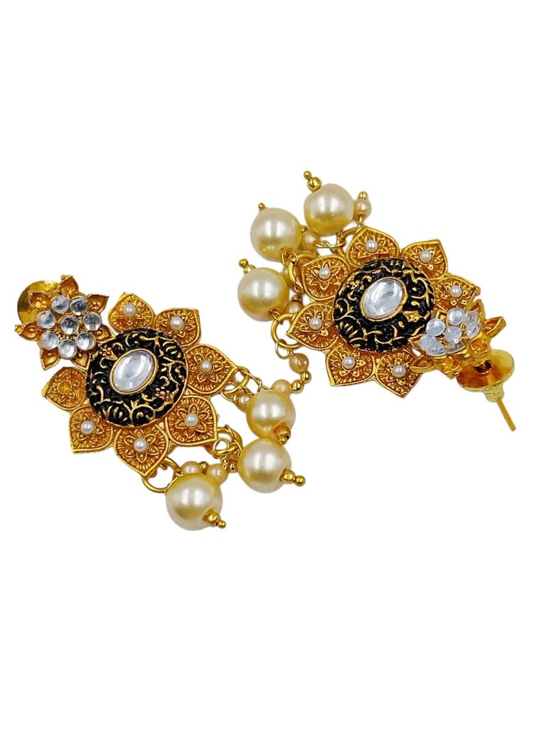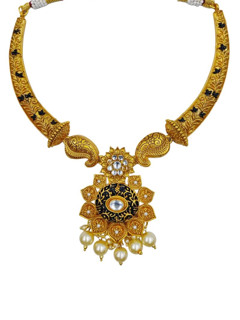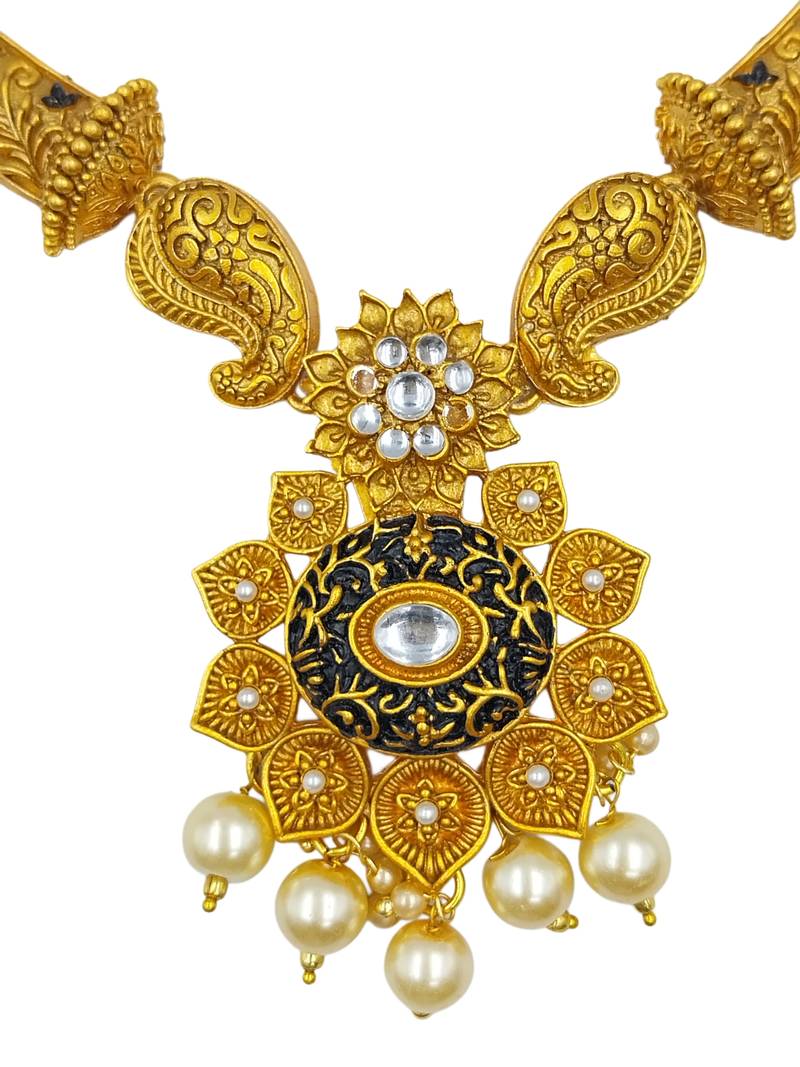 Product Name | Antique Gold Plated Black & Gold Meenakari Necklace Set With Pearl Drops. | |