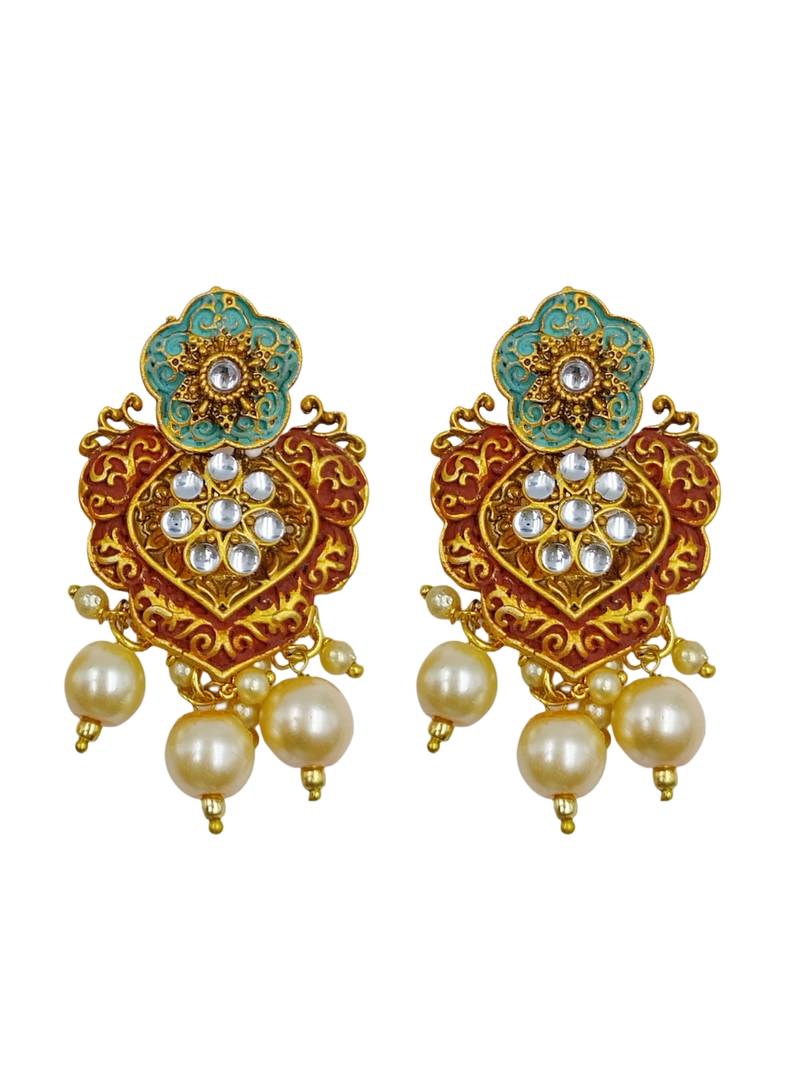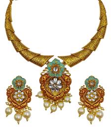 Product Name | Antique Gold Plated Rubygreen & Gold Meenakari Necklace Set With Pearl Drops. | |