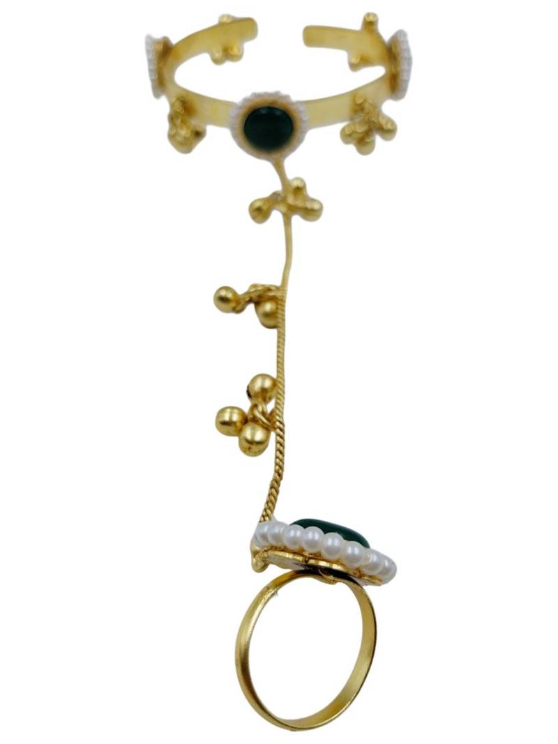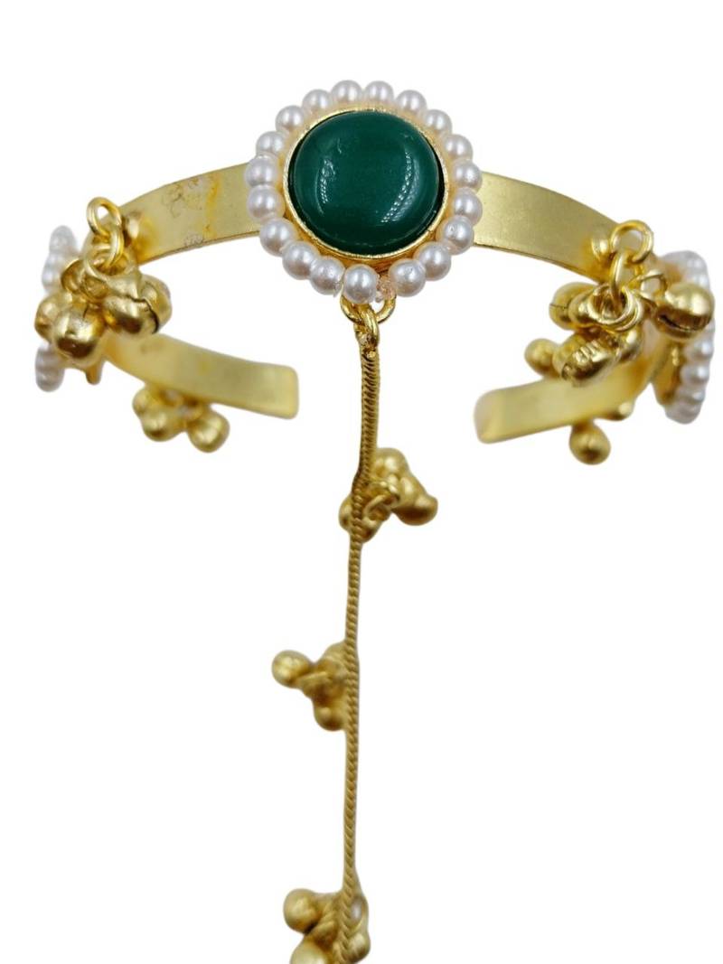 | Product Description | Elevate Your Ethnic Jewellery Collection With This Green Gold Plated Kundan Hathphool With Floral Design A Striking Hand Accessory That Brings Royal Charm And Festive Glamour To Your Look! Featuring Rich Green Kundan Stones Set In A Lustrous Gold Plated Finish, This Intricately Crafted Floral Hathphool Adds Eye Catching Sparkle To Wedding Lehengas, Festive Sarees, And Traditional Gowns. The Adjustable Design Ensures A Comfortable Fit, Making It Perfect For Ceremonies, Celebrations, And Cultural Events. |