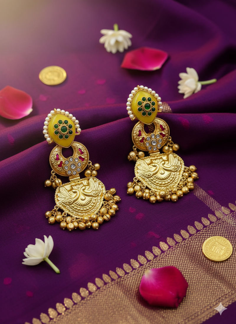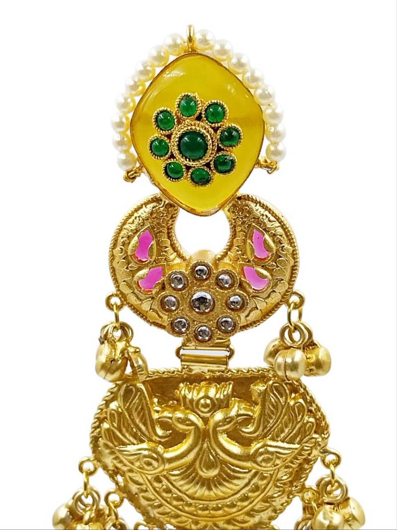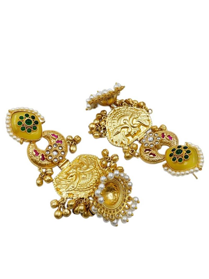 | Product Name | Gold Plated Kashmiri Jhumka Earrings With Yellow Kundan Pearl Drops & Antique Finish | |