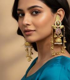 | Product Description | Add A Touch Of Elegance To Your Ethnic Look With These Gold Plated Temple Earrings Featuring Kundan Stones, Accents, And Pearl Tassel Hangings |