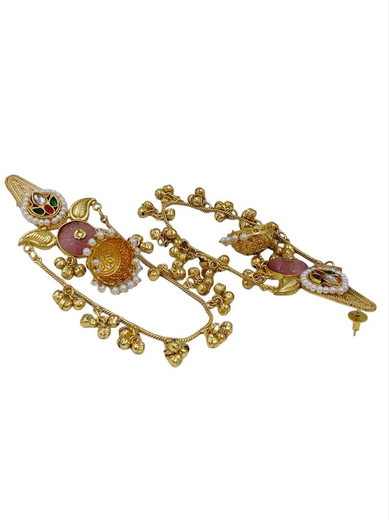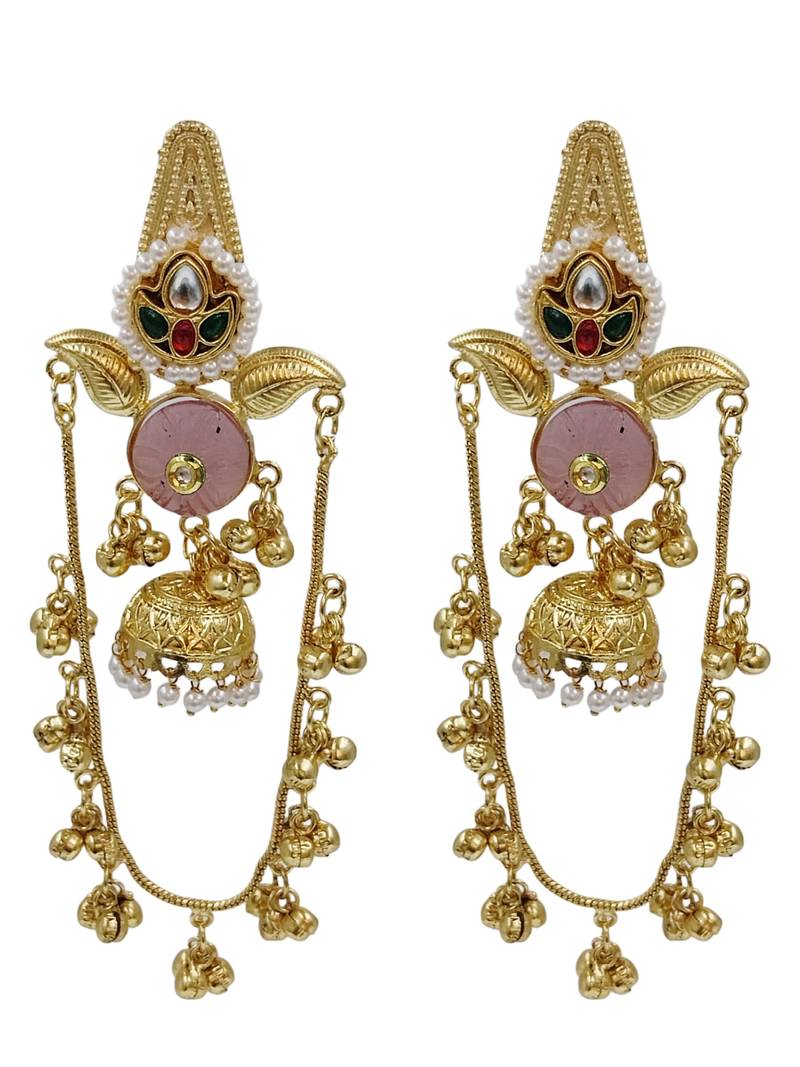 | Product Name | Gold Plated Kashmiri Kundan Pearl Jhumka Earrings With Pink Stone & Chain | |