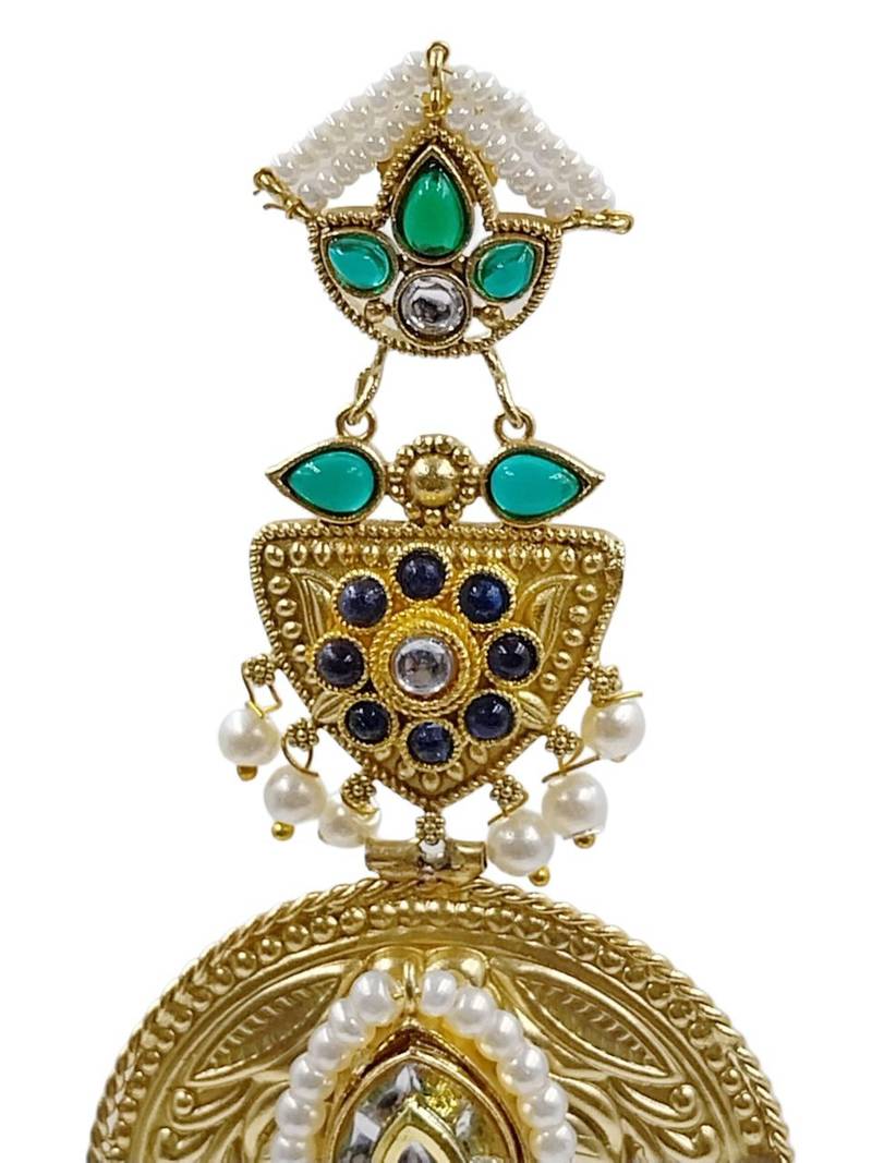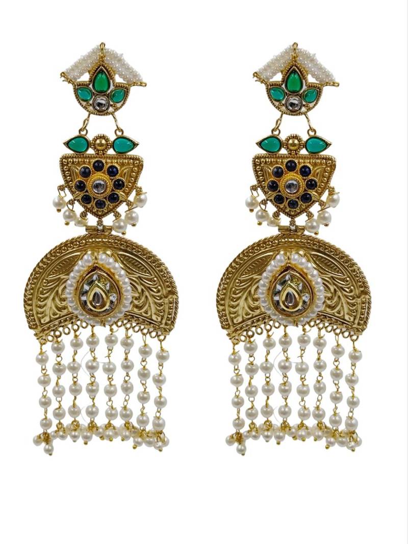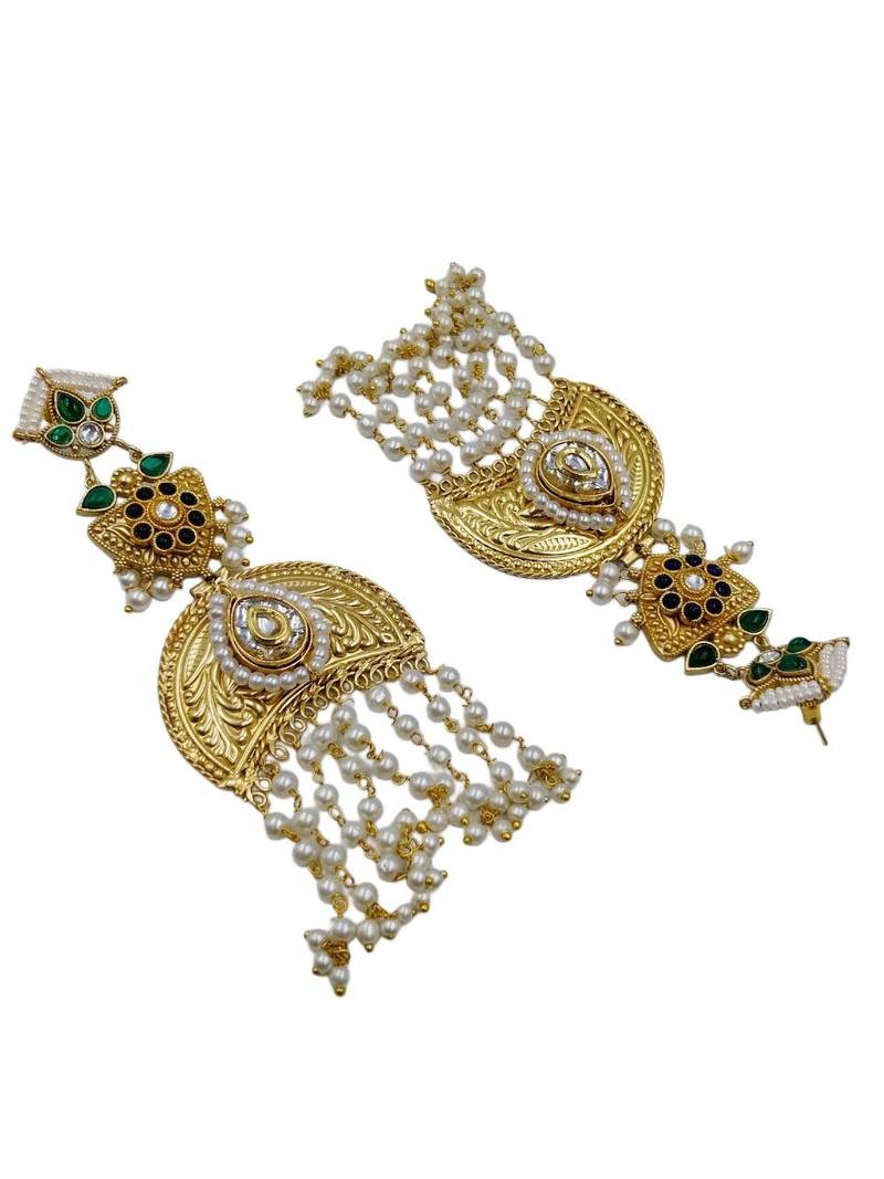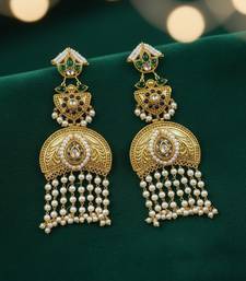 | Product Name | Gold Plated Kundan Temple Earrings With Pearl Tassels & Green Stone | |